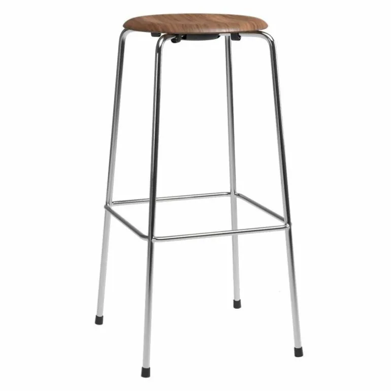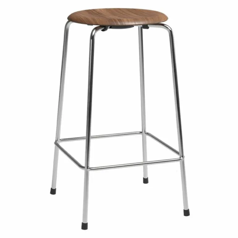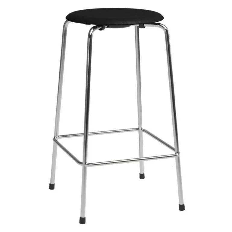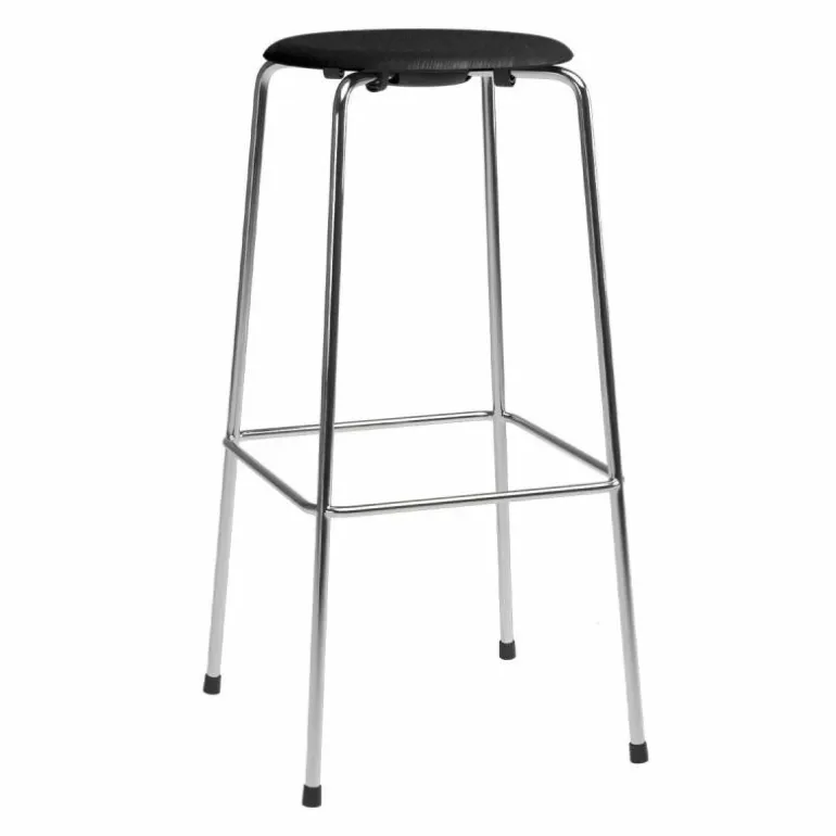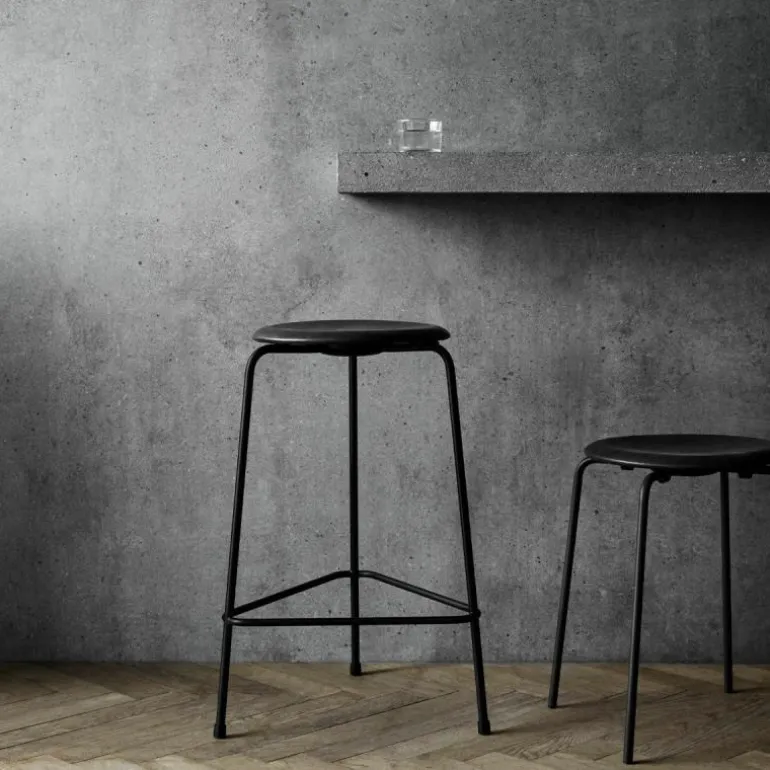 De Fritz Hansen High Dot Barkruk is een ontwerp van Arne Jacobsen. Aan het begin van de jaren ’50 was Arne Jacobsen veel te vinden in de fabriek van Fritz Hansen, waar hij werkte aan de iconische Ant Chair. Tegelijkertijd realiseerde hij de Dot Kruk, welke in 1954 op de markt verscheen. In eerste instantie had deze net al de Ant Stoel drie poten, maar in 1970 werd hier een vierde aan toegevoegd. Sinds 2016 behoort dekruk tot de Objects collectie van Fritz Hansen. r