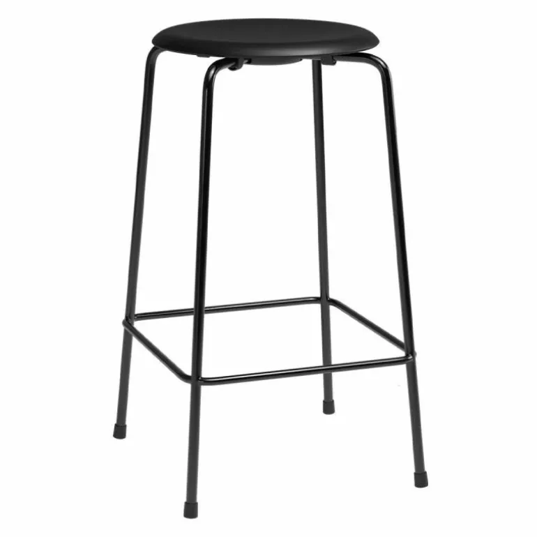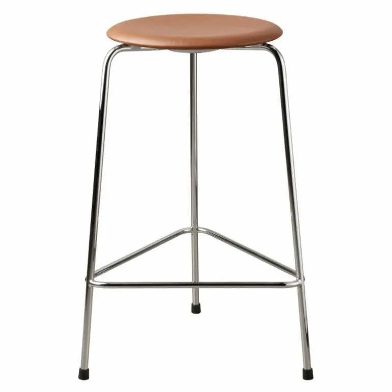 Naast de lage kruk is de Dot ook uitgevoerd in deze barkruk. Het onderstel is gemaakt van zwart gepoedercoat staal of verchroomd staal. De zitting is gestoffeerd met leder waardoor er net wat meer comfort wordt toegevoegd aan de kruk. De kruk heeft een zithoogte van 65 centimeter. De kruk is uitgevoerd in drie varianten.