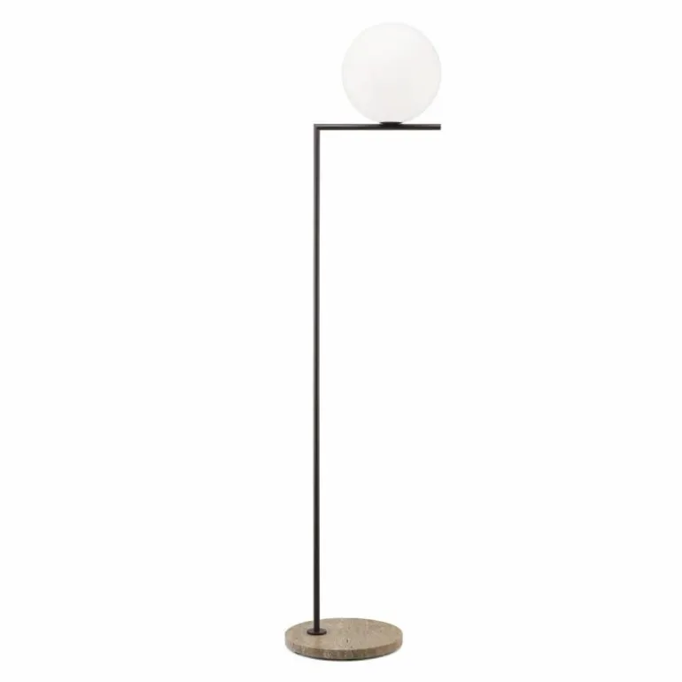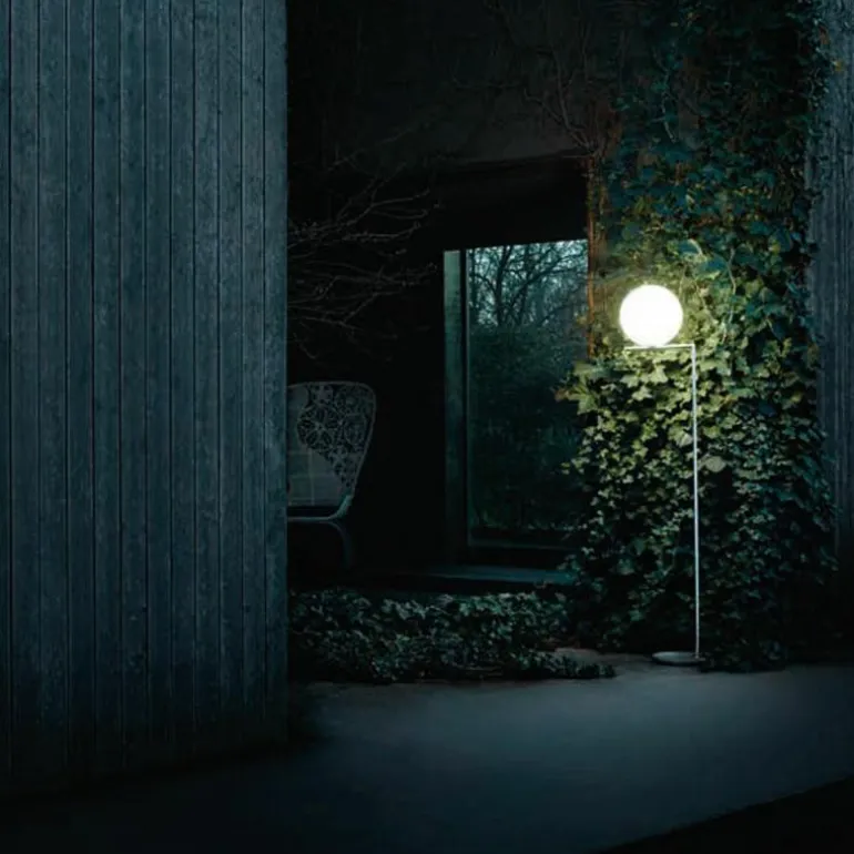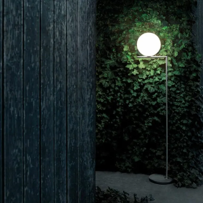 De Outdoor IC Vloerlamp is in tegenstelling tot de indoor variant voorzien van een marmeren voet en heeft een staander in roestvrijstaal, messing of diepbruin of zwart aluminium. Er zijn vier combinaties van het soort staander en voet mogelijk. De roestvrije variant heeft een voet van occhio di pernice marmer, de messing IC heeft een voet van grijs lava marmer, de bruine variant heeft een voet van travertino imperiale marmer en de zwarte uitvoering heeft een voet van zwart lava marmer. Deze zijn bovendien in twee afmetingen verkrijgbaar: F1 (Ø36 x h. 135 cm.) waarbij de glazen bol een diameter heeft van 20 centimeter en F2 (Ø38 x h. 185.2 cm.) waarbij de glazen bol een diameter heeft van 30 centimeter.