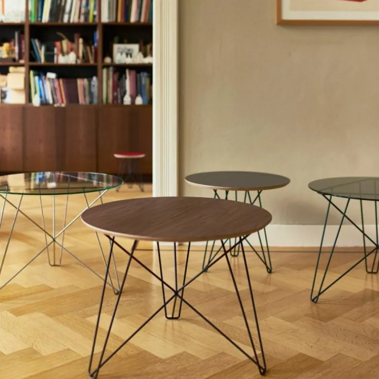 De IJhorst Bijzettafel S is verkrijgbaar met een blad van HPL, een stevig laminaatsoort dat door Spectrum in rood, donkergrijs en zwart geleverd kan worden. Daarnaast kunt u ook kiezen voor een blad van Amerikaans notenhout, waarmee de retro uitstraling extra benadrukt wordt. Het draadstalen frame is voorzien van een zwarte epoxylaag (RAL 9005). Naast deze kleine variant is de IJhorst Bijzettafel ook in twee grotere uitvoeringen verkrijgbaar. r
