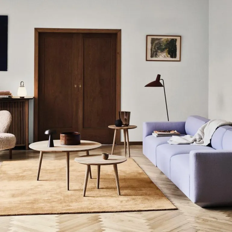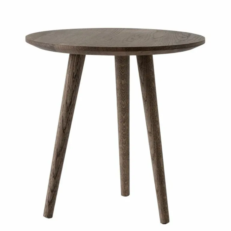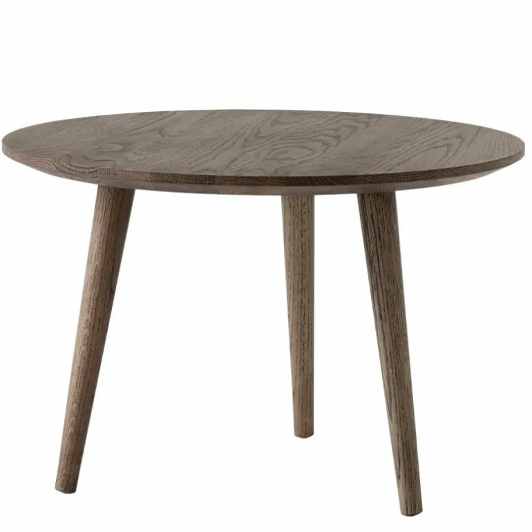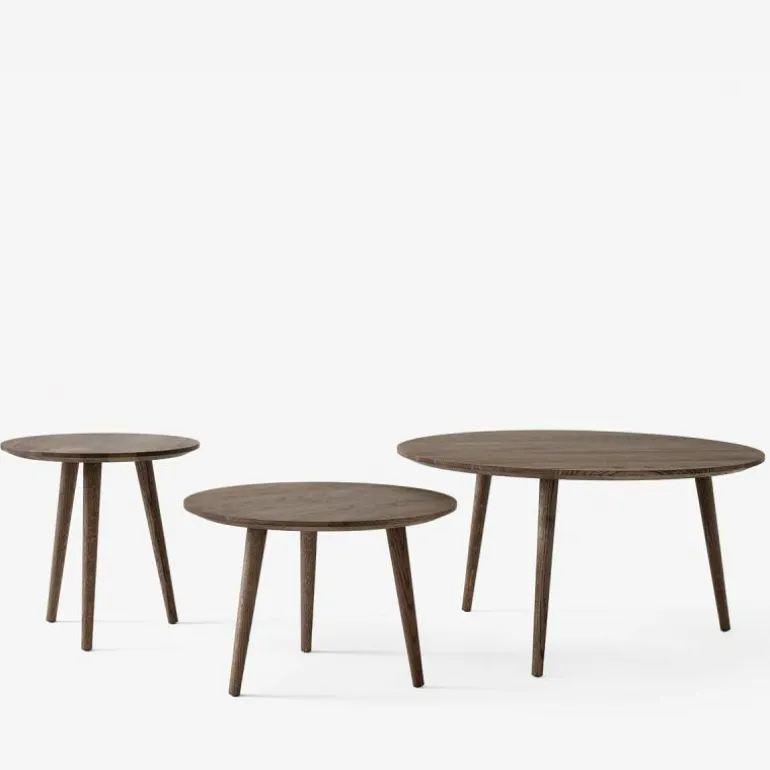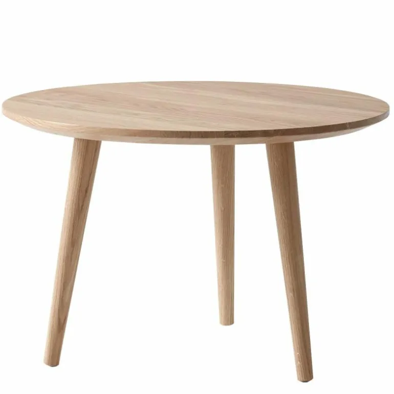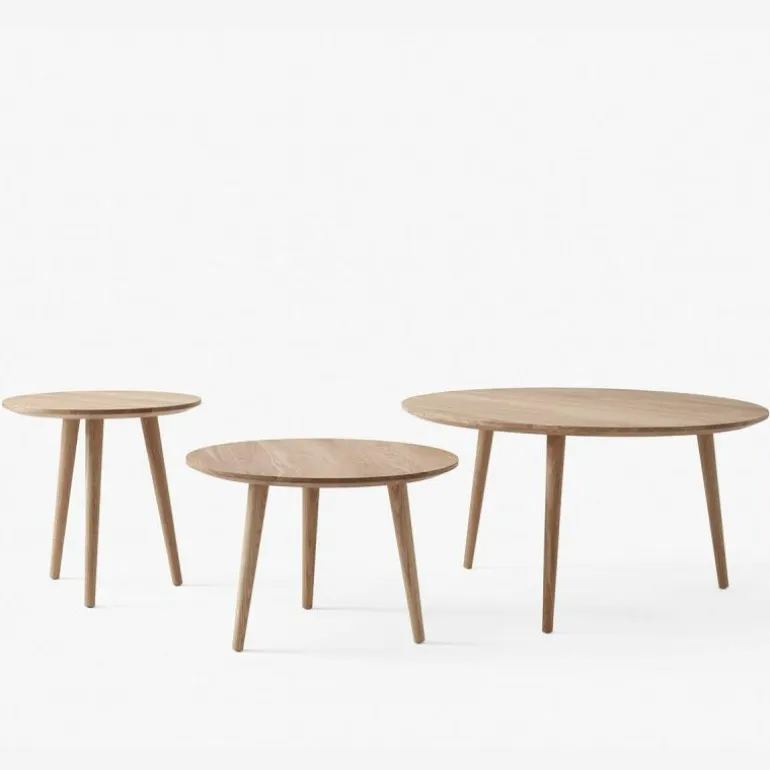 Zowel het blad als de poten zijn gemaakt van massief eikenhout, en zijn in twee uitvoeringen voorzien van een behandeling met olie en in één uitvoering met zwarte lak. De lak beschermt het hout tegen invloeden van buitenaf en geeft een mooie glans aan de kleine tafel, maar is iets gevoeliger voor krassen. De geoliede varianten zijn hier beter tegen bestand, maar zijn wel weer gevoeliger voor vlekken en kringen omdat de open structuur behouden blijft. De In Between Salontafel is verkrijgbaar in de maten SK13 (Ø48 x h. 48 centimeter), SK14 ( Ø60 x h. 40 centimeter) en SK15 (Ø90 x h. 48 centimeter), die zich goed met elkaar laten combineren als eiland opstelling.