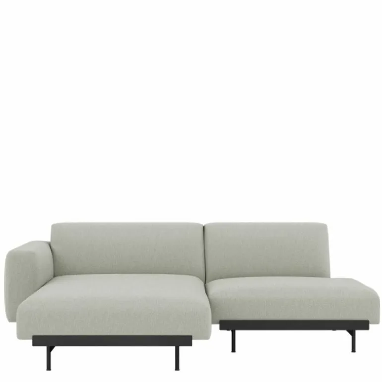 De 2-zits bank met loungedeel is 216 centimeter breed en heeft een diepte van 169 centimeter aan de lange zijde en een diepte van 107 centimeter aan de korte zijde. De bank zonder loungedeel is 198 centimeter breed en 107 centimeter diep. Beide uitvoeringen hebben een hoogte van 70 centimeter. De In Situ 2-zits Bank is standaard verkrijgbaar in drie stofferingen en voor elke bank heeft u de keuze of u de lange zijde links of rechts wil.r