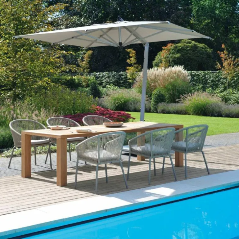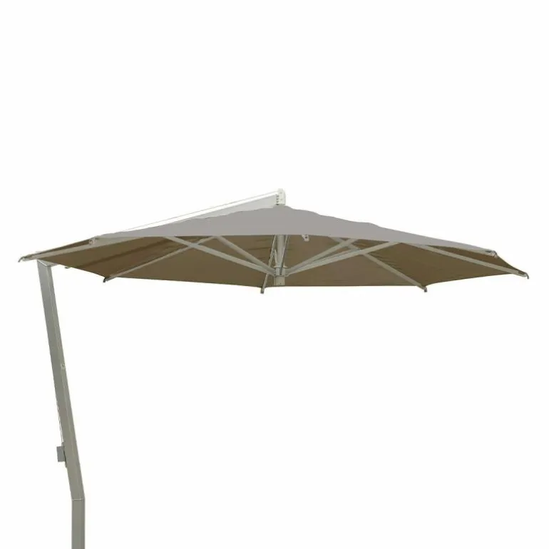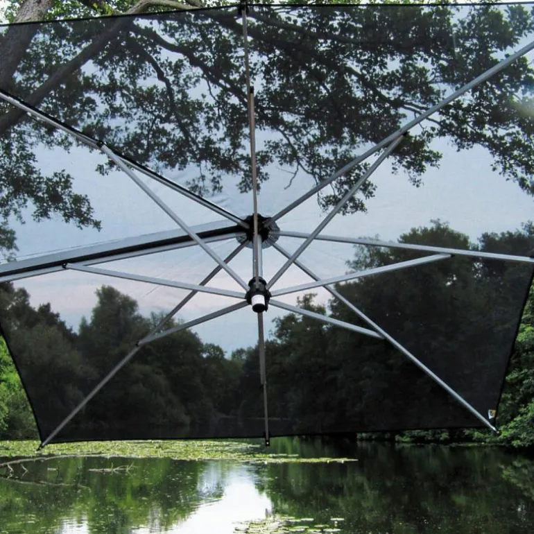 De Borek Ischia Parasol is onderdeel van de veelzijdige collectie parasols van Borek. Het design valt dankzij zijn royale omvang direct in het oog en is bijzonder functioneel. Het vrijhangende systeem maakt namelijk dat de parasol boven de tafel of loungehoek zweeft, zonder dat er een mast in het midden staat. De omvangrijke parasol is uitgevoerd met een opendraaier om de parasol eenvoudig te openen en te sluiten. r