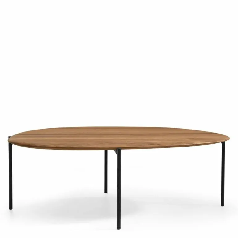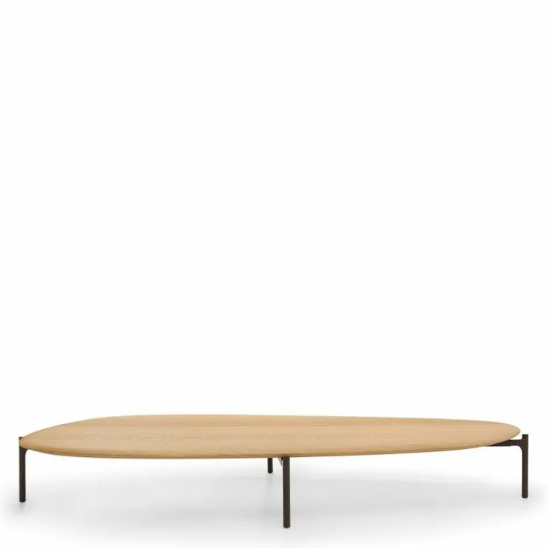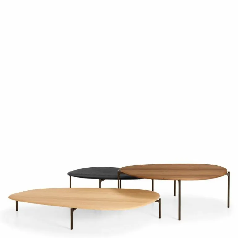 De Ishino Wood Salontafel heeft een tafelblad van 2,8 centimeter dik en is vervaardigd uit massief hout, zoals de naam al doet vermoeden. De tafel is verkrijgbaar in wit gepigmenteerd eikenhout, tobacco eikenhout, gebrand eikenhout en notenhout. Het stalen onderstel is afgewerkt met een matte coating in zwart of brons. Alle beschikbare afmetingen zijn verkrijgbaar in drie verschillende hoogtes. Geolied hout heeft de eigenschap om gevoelig te zijn voor zonlicht. Wanneer het tafelblad wordt blootgesteld aan direct zonlicht kan lichte verkleuring optreden. Combineer verschillende afmetingen en kleuren met elkaar voor een harmonieuze samensmelting in de woonruimte.r