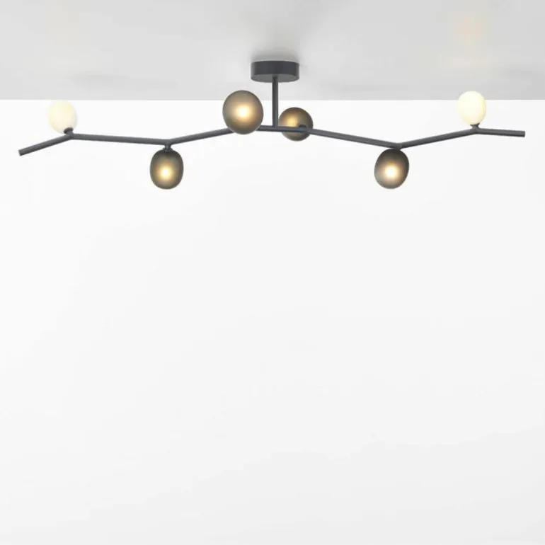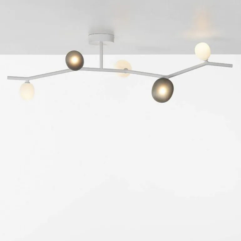 De Ivy Plafondlamp heeft een armatuur welke vervaardigd is uit robuust metaal en is verkrijgbaar in wit en antraciet. De lampenkappen zijn gemaakt van mondgeblazen glas in light rose, opaal of smoke grey. Combineer verschillende kleuren lampenkappen met elkaar voor een speelse touch. De hanglamp komt in zes basismaten voor de metalen takken en drie verschillende maten voor de glazen kappen.r