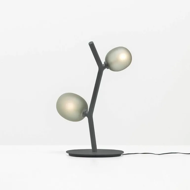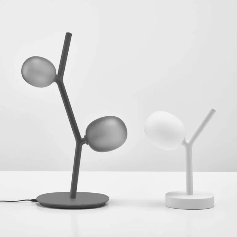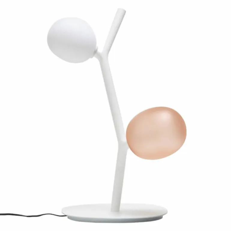 De Ivy Tafellamp heeft een armatuur welke vervaardigd is uit gepoedercoat robuust metaal en is verkrijgbaar in wit en antraciet. De lampenkappen zijn gemaakt van mondgeblazen glas in de kleuren: light rose, opaal of smoke grey. De sfeervolle tafellamp heeft een diameter van 29 centimeter met een hoogte van 46 centimeter. r