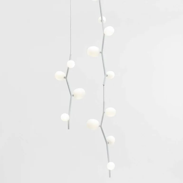 De Ivy Vertical Hanglamp heeft een armatuur welke vervaardigd is uit robuust metaal en is verkrijgbaar in wit en antraciet. De lampenkappen zijn gemaakt van mondgeblazen glas in light rose, opaal of smoke grey. Combineer verschillende kleuren lampenkappen met elkaar voor een speelse touch. De hanglamp komt in zes basismaten voor de metalen takken en drie verschillende maten voor de glazen kappen.r