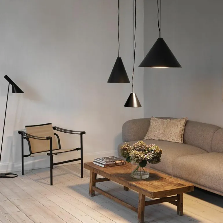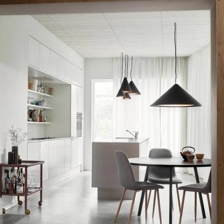 De Keglen lampenfamilie is verkrijgbaar in vier formaten en in een zwarte of witte kleur. Hierdoor is de lamp perfect toepasbaar in verschillende interieurstijlen. De snoer is van staaldraad. De direct bestelbare lampen zijn geschikt voor zowel fase-aansnijdingsdimmers als fase-afsnijdingsdimmers en kunnen op aanvraag ook worden geleverd in een uitvoering die compatibel is met het DALI dimmersysteem. Neem hiervoor contact op met onze interieurspecialisten.