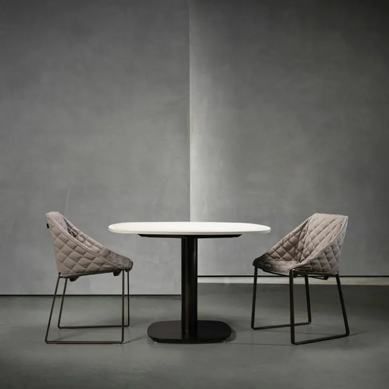 De Kekke Outdoor Eettafel heeft een onderstel van roestvrijstaal met een gepoedercoate afwerking in zwart, wit of brons. Het tafelblad is vervaardigd uit beton dat met zijn zachte rondingen een prachtig contrast vormt met het robuuste onderstel. Het betonnen blad is verkrijgbaar in Mist, Moss en het warme Terracotta. De eettafel heeft een breedte van 110 centimeter en een hoogte van 76 centimeter en is verkrijgbaar in een vierkante uitvoering met een lengte van 110 centimeter of een rechthoekig tafelblad van 180 centimeter. r