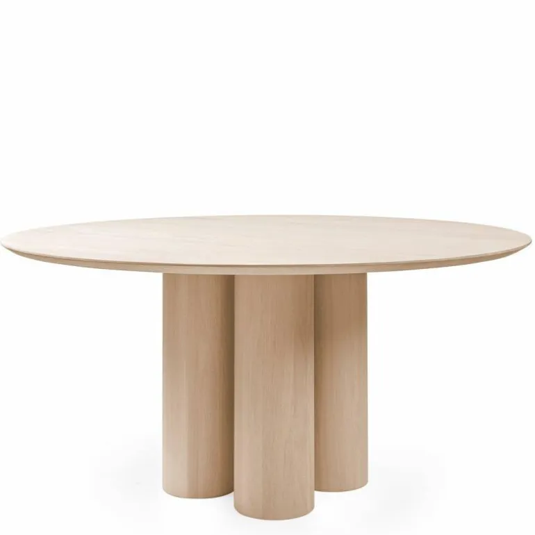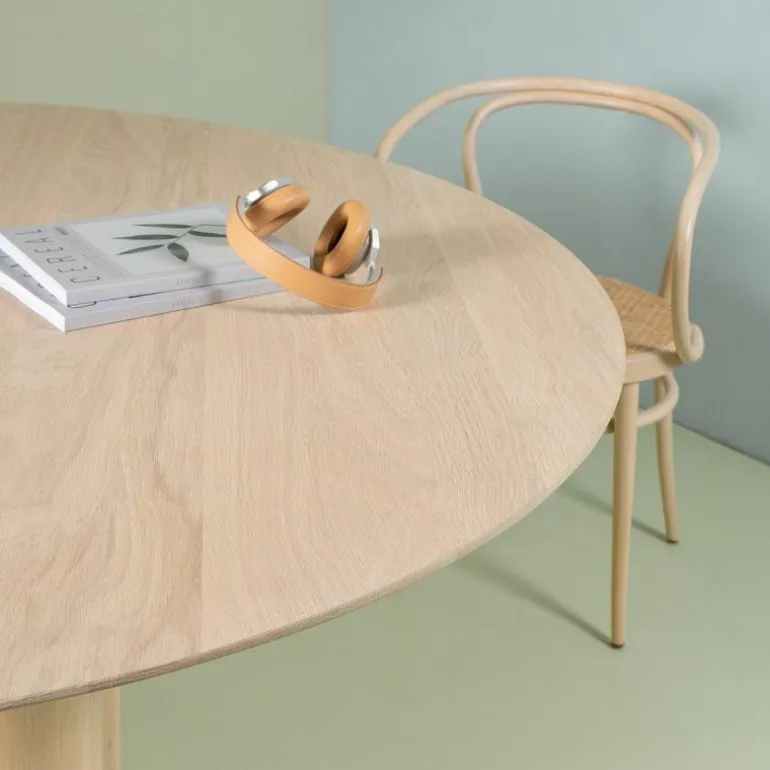 Deze bijzonder ogende eettafel is verkrijgbaar in diverse standaard afmetingen. De twee kleinste standaard afmetingen (Ø140, Ø150) beschikken over drie stevige poten als onderstel. De grotere standaard afmetingen (Ø160, Ø170, Ø180, Ø200) beschikken daarentegen over een onderstel uit vier massieve poten. Al deze tafels hebben een hoogte van 76 centimeter. De hoogte vanaf de onderkant van het tafelblad tot aan de grond bedraagt 73 centimeter. Staat uw gewenste maat er niet tussen? Bij Kluskens is bijna altijd maatwerk mogelijk.r