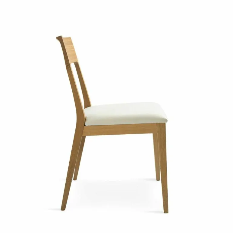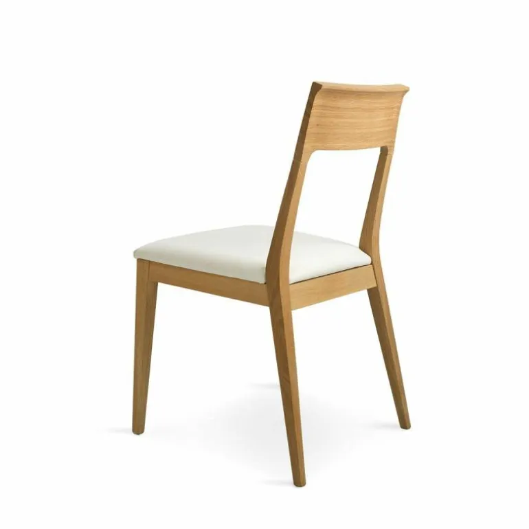 De Kluskens Kem 595 Bellagio Stoel is een ontwerp van Kluskens. Het merk probeert met hun natuurlijke houten ontwerpen meer harmonie tussen mens en natuur te creëren. Hun filosofie is dat meubelen van natuurlijk hout rust geven in het hectische dagelijkse leven. De Bellagio stoel is dan ook ontworpen met deze rust in het achterhoofd; het ontwerp is minimalistisch gehouden, waardoor het gemakkelijk opgaat in de ruimte. De stoel bestaat vooral uit rechte lijnen, op een enkel klein detail na. In de rugleuning is een subtiele boog verwerkt, wat het comfort tijdens het gebruik van de stoel verhoogt. Het comfort wordt nog groter met het zachte zitkussen van leer, dat in maar liefst tien kleuren te stofferen is. Vanwege zijn neutrale voorkomen schuift u de Bellagio stoel moeiteloos aan bij de houten tafels van Kluskens, zoals de Flynt eettafel. De stoel wordt net zoals de tafels gemaakt van zorgvuldig geselecteerd eiken- en notenhout van hoogwaardige kwaliteit, en kan worden afgewerkt met een van de vele olie- en lakopties uit het assortiment van Kluskens.Vanwege de diverse mogelijkheden voor de Bellagio stoel heeft MisterDesign een uitvoering geselecteerd die u online direct kunt bestellen. Deze is gemaakt van wit geolied eikenhout en heeft een zitting van wit leder. Bent u benieuwd naar alle opties voor deze stoel? Onze interieurspecialisten nemen de mogelijkheden graag met u door.