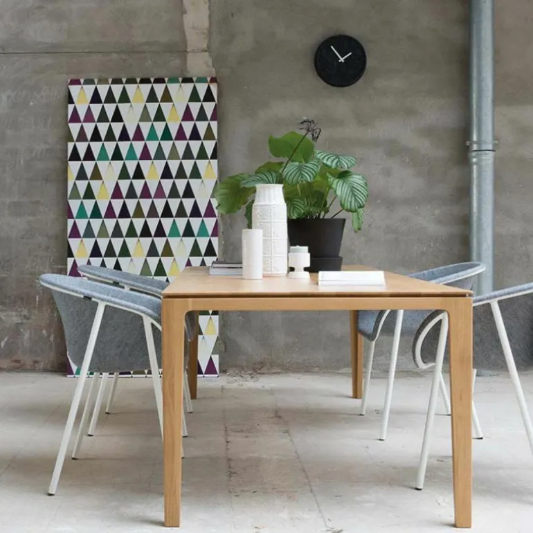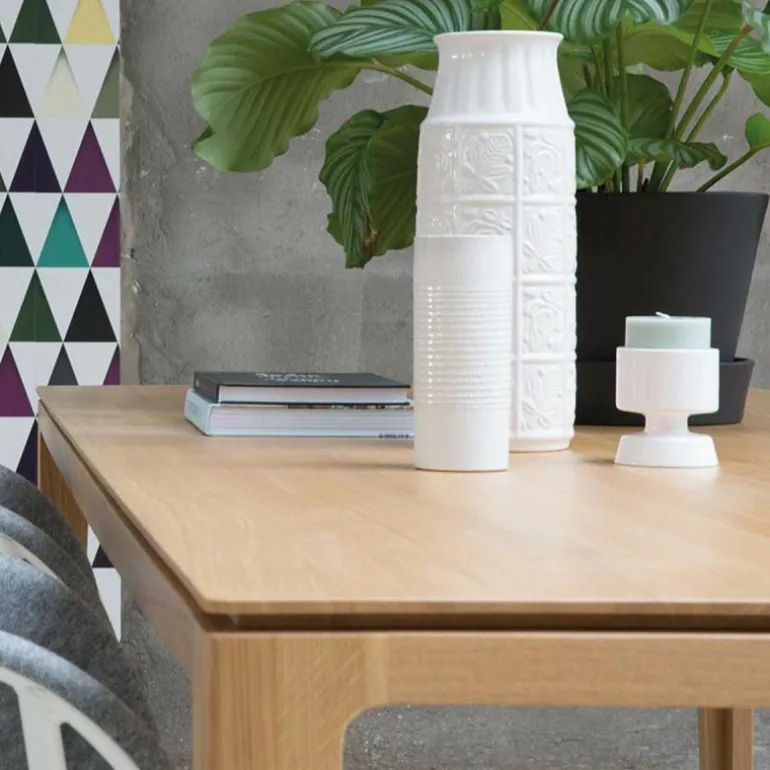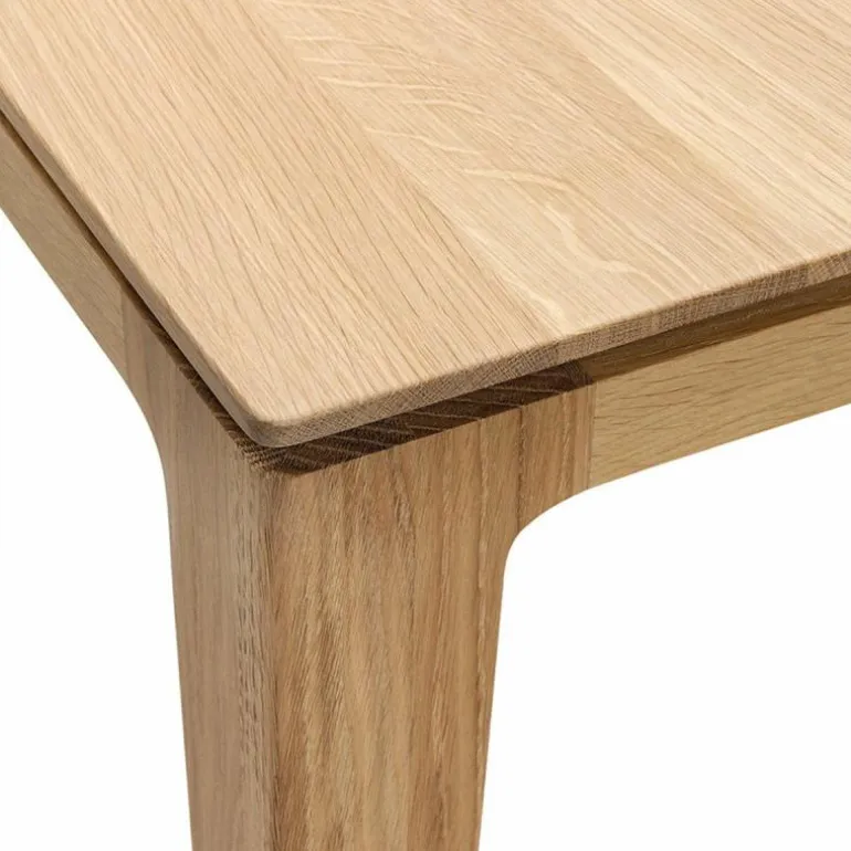 De Savannah tafel is klassiek en elegant en heeft een vleugje Nordic design in zich. De overgang van het onderstel met het tafelblad wordt gekenmerkt door een gleuf die over de gehele breedte doorloopt. Het massief eiken is afgewerkt met een matte lak, waardoor het hout beschermd is tegen het indringen van vloeistoffen. r