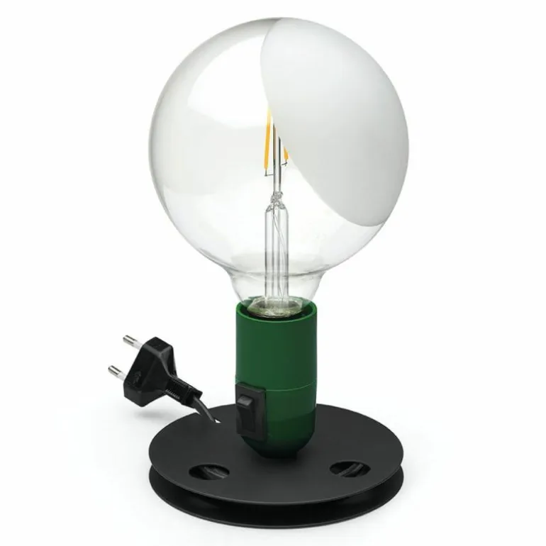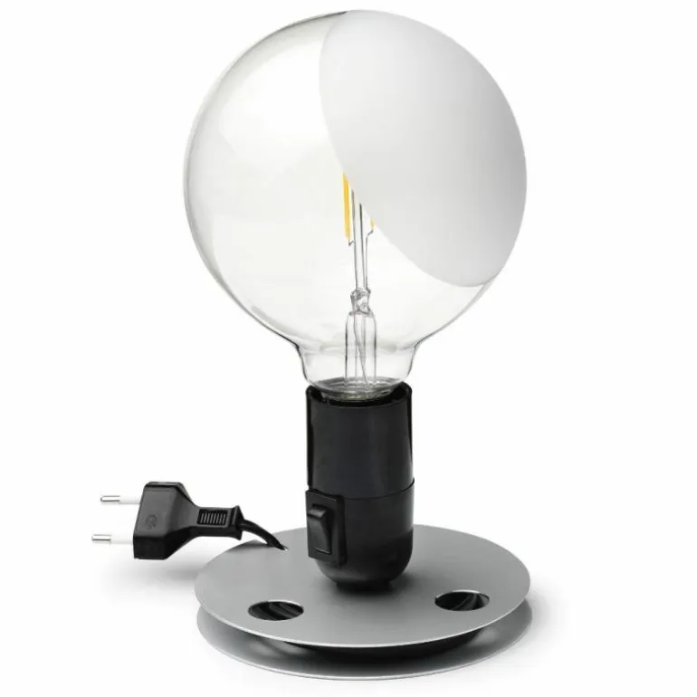 De voet van Flos Lampadina is gemaakt van geëxoleerd aluminium en is tegelijkertijd een snoeroproller. De fitting is van bakeliet en bij het oranje model vloeibaar gelakt. Lampadina is geschikt voor een Globe-lamp die transparant is en aan één kant deels mat gezandstraald is. ON/OFF- tuimelschakelaar op de huls van de fitting, aan de buitenkant te bedienen.