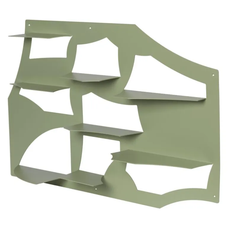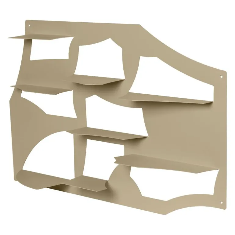 De plank is vervaardigd uit staal met een poedercoating, waardoor een stevige en onderhoudsvriendelijke constructie ontstaat. Dit materiaal maakt de wandplank geschikt voor dagelijks gebruik en garandeert dat de kwaliteit en uitstraling langdurig behouden blijven. De afwerking met lasergesneden details geeft het ontwerp extra diepte en zorgt voor een karakteristieke belijning. De scherpe randen en heldere contouren benadrukken de architectonische uitstraling van de plank, waardoor deze aan de muur niet alleen als functioneel element, maar ook als visueel accent fungeert.
