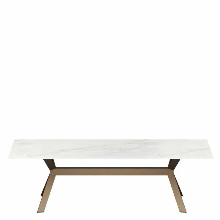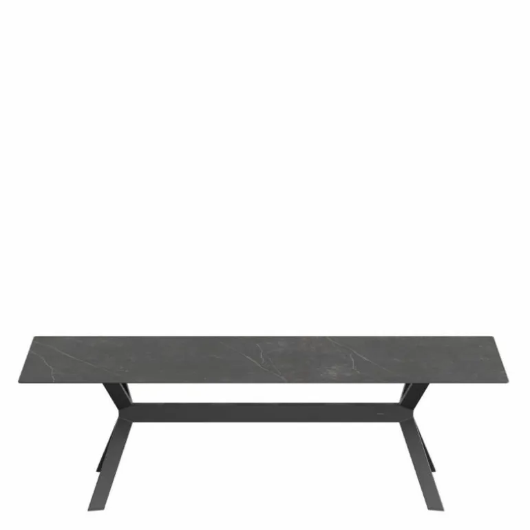 Het tafelblad van de Lexx Eettafel Hoog is gemaakt van hoogwaardig Dekton. Het blad is verkrijgbaar in de lichte kleur Rem en de donkere kleur Kelya en zijn beide voorzien van een subtiel aderpatroon. Het strakke tafelblad wordt gedragen door een onderstel van aluminium in de kleuren brons, antraciet of chalk.