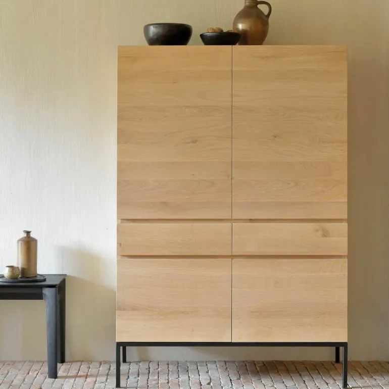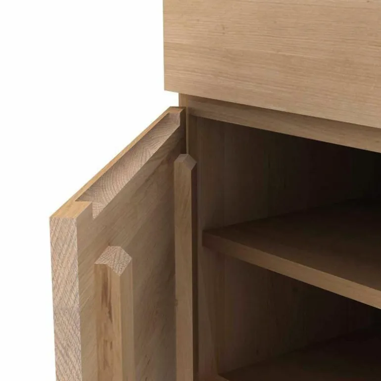 Om het design te beschermen is het eikenhout afgewerkt met een olie. Het is raadzaam om na een aantal jaren het meubel eventueel opnieuw te behandelen met een hardwaxolie. Deze kunt u direct bij ons bij bestellen. Verwijder vlekken direct met een licht vochtige doek en milde zeep.