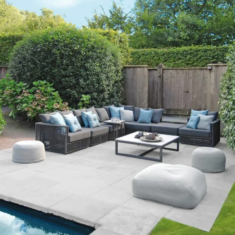 De Lincoln Modulaire Loungebank heeft een zithoogte van 41 centimeter en is verkrijgbaar in de kleuren antraciet en zand. De zandkleurige modules worden geleverd met all weather Sunbrella kussens in de kleur Caillou Cocoa en de antracietkleurige modules met all weather Prato kussens in de kleur Charcoal. De losse elementen zijn met elkaar te verbinden door middel van connectoren, die op aanvraag verkrijgbaar zijn. Neem hiervoor contact op met onze interieuradviseurs of kom eens langs in een van onze winkels. Dan helpen we u graag! r