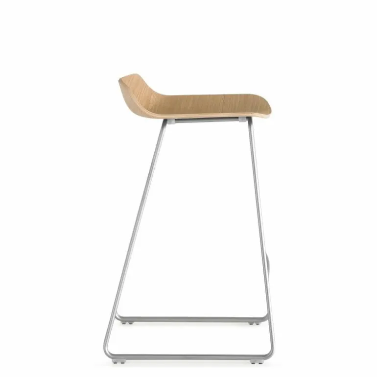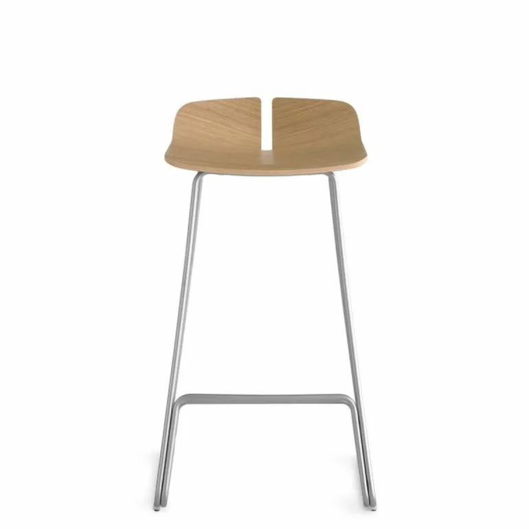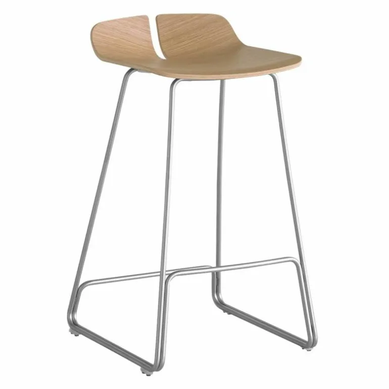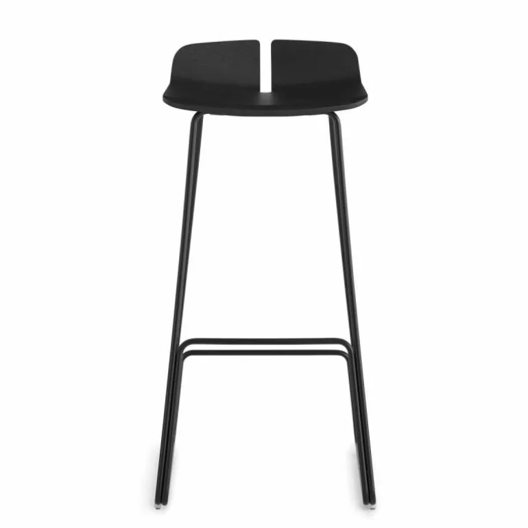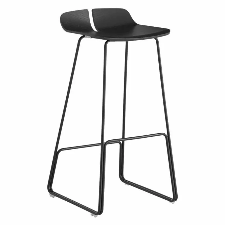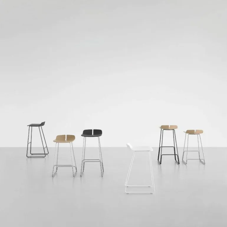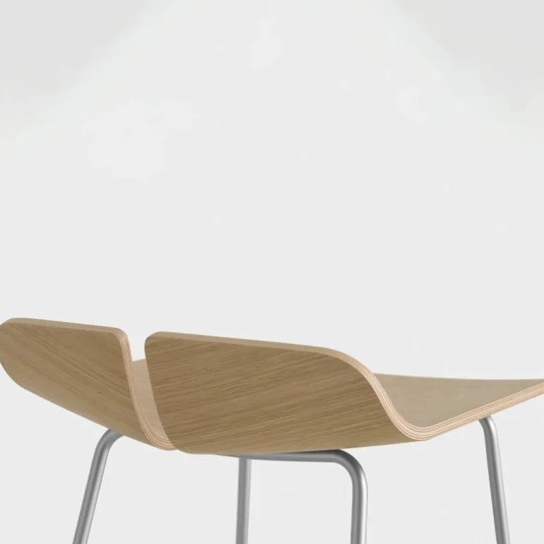 Het onderstel van de Link Barkruk is gemaakt van gepoedercoat en roestvrij staal. De zitting is vervaardigd uit multiplex in naturel eiken-, zwart eiken-, wit gelakt eiken- en donker walnoothout. r