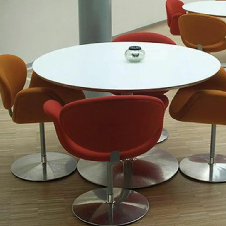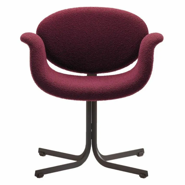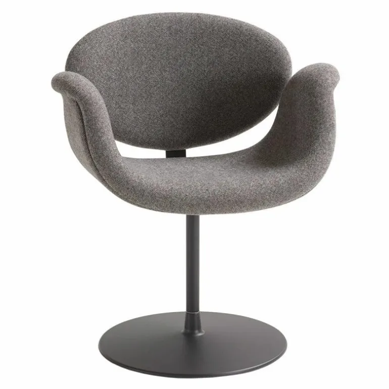 Bij MisterDesign hebben we twee varianten die direct te bestellen zijn, zonder keuzestress. Een van de Tulip stoelen beschikt over een Artifort Selecte 260 stoffering, en een draaibaar schijf onderstel in de poedercoating zwart/grijs. Aan de onderzijde van de schijf is een ring van vilt geplaatst. De andere variant beschikt over een Basel 129 stoffering en een onderstel van gepolijst RVS. Deze laatste uitvoering wordt geleverd met kunststof doppen en viltglijders. De stofferingen bestaat uit twee tegenovergestelde kleuren die voor een rijkelijk contrast zorgen.r