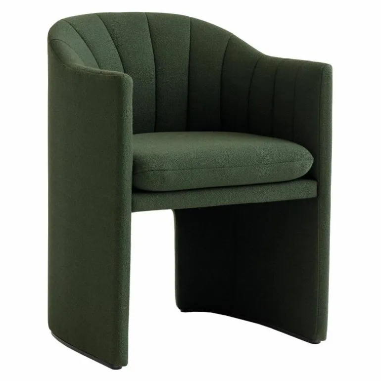 De eetkamerstoel heeft dezelfde elegante luxe als de fauteuil, maar is wat smaller en hoger om de gewenste zithoogte te creëren. Bovendien lopen zitten er een vloeiende lijn in de arm leuning naar beneden, zodat u de armen daar comfortabel op kunt laten rusten. Het model is opgebouwd uit een houten frame met daarop koudschuim en polyester watten en alleen mogelijk in een stoffen bekleding. Standaard is de stoel voorzien van teflon glijders. r