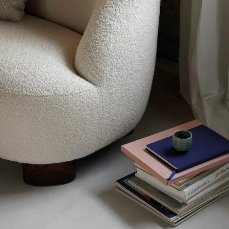 De sofa is direct verkrijgbaar in zes verschillende uitvoeringen met de keuze uit twee verschillende stofferingen, waaronder Karakorum. Karakorum is een stof die bestaat uit bouclé wol en viscose en is geïnspireerd op een lamsbontsoort afkomstig van het Astrakan schaap. De sofa is verkrijgbaar met poten van geolied walnoot, geolied eiken of zwart gelakt eiken. Bent u geïnteresseerd in een andere stoffering? Neem contact met ons op voor de mogelijkheden.