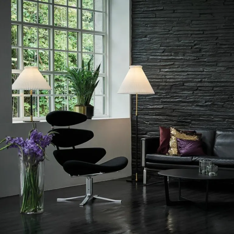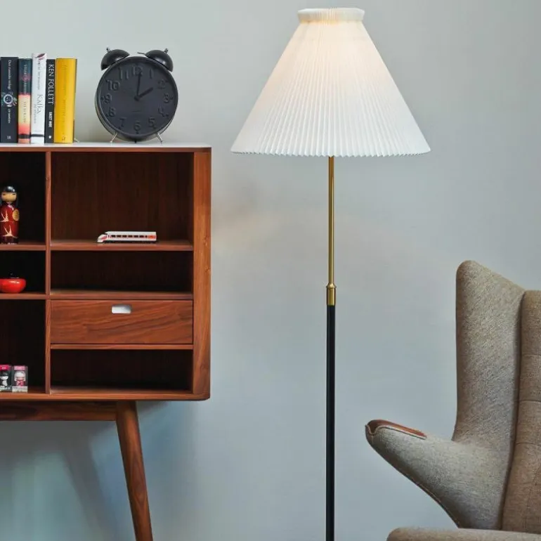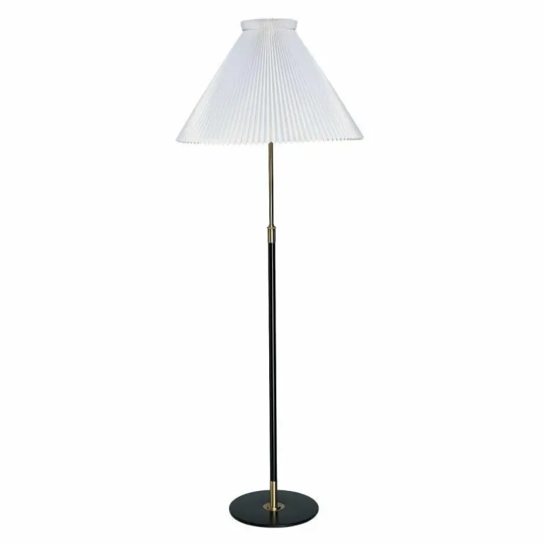 Bijzondere bijkomstigheid bij deze vloerlamp is dat de hoogte ervan versteld kan worden. Zo heeft dit meestermerk naar wens een hoogte van 121 tot 170 centimeter. De lamp kan naar keuze uitgevoerd worden met papieren of kunststof lampenkap, die met de hand geplooid worden door ambachtslieden van LE KLINT.r