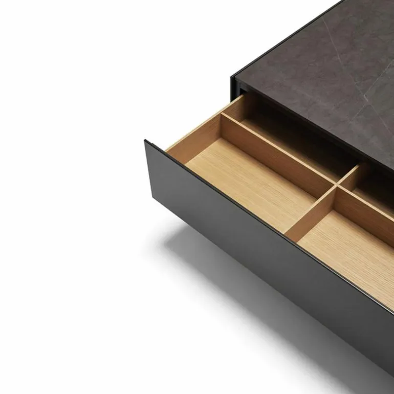 Doordat de salontafel geheel naar eigen wens in te delen is, voegt u een persoonlijke touch toe aan uw interieur. De Matic Salontafel is gemaakt van hoogwaardige materialen en is ontworpen met aandacht voor detail. Het interieur is uitgevoerd in naturel eikenhout, terwijl het exterieur vervaardigd is uit gepoedercoat staal in teal, charcoal en lichtgrijs. Voor een vleugje elegantie is er gekozen voor een marmeren blad welke verkrijgbaar is in grijs, Statuarietto of Marquina marmer. De aandacht voor kwaliteit die Knoll en Piero Lissoni in dit meubel hebben gestoken, maakt deze opbergoplossing een investering voor de lange termijn.r