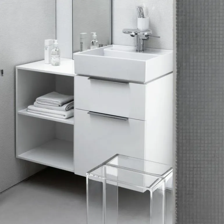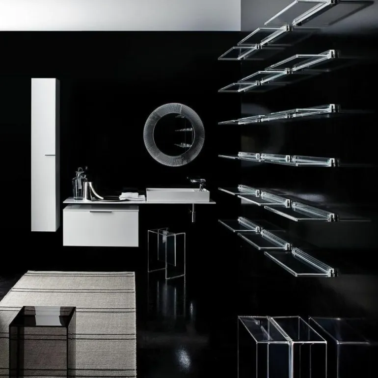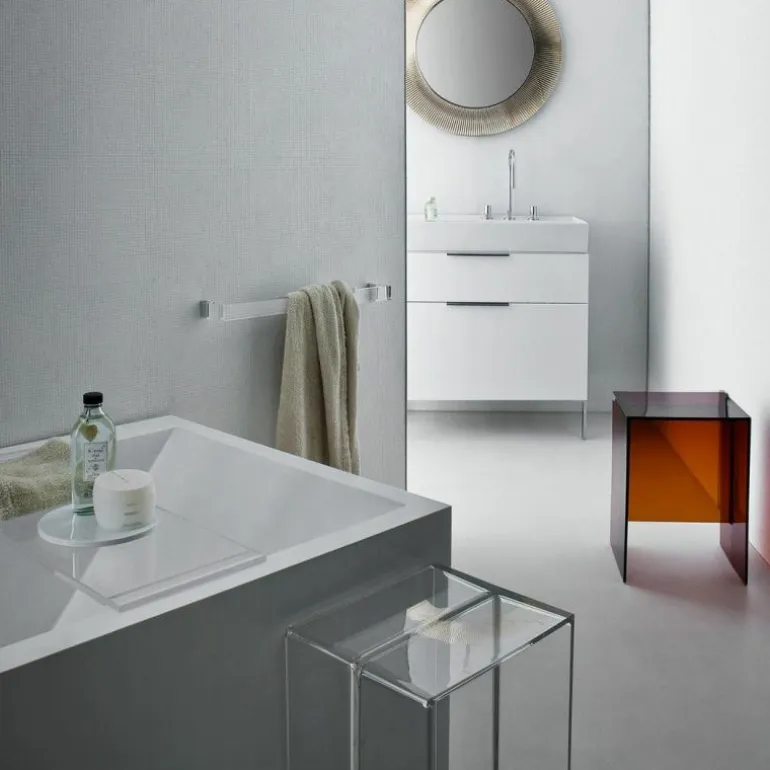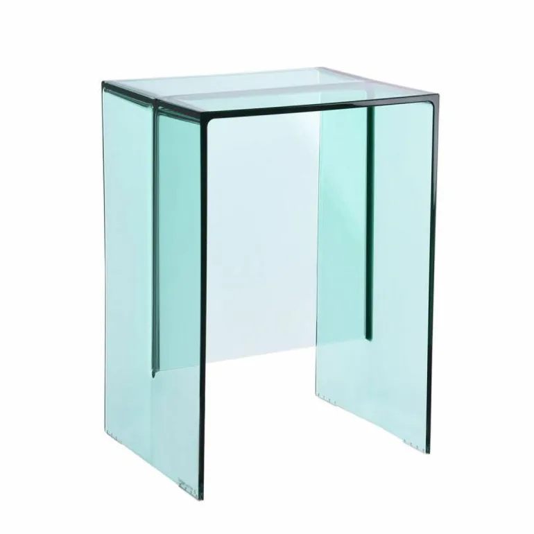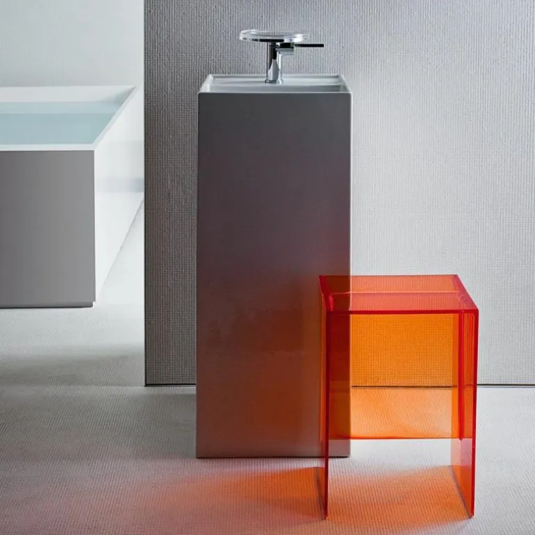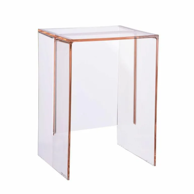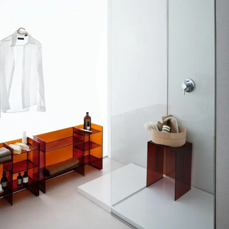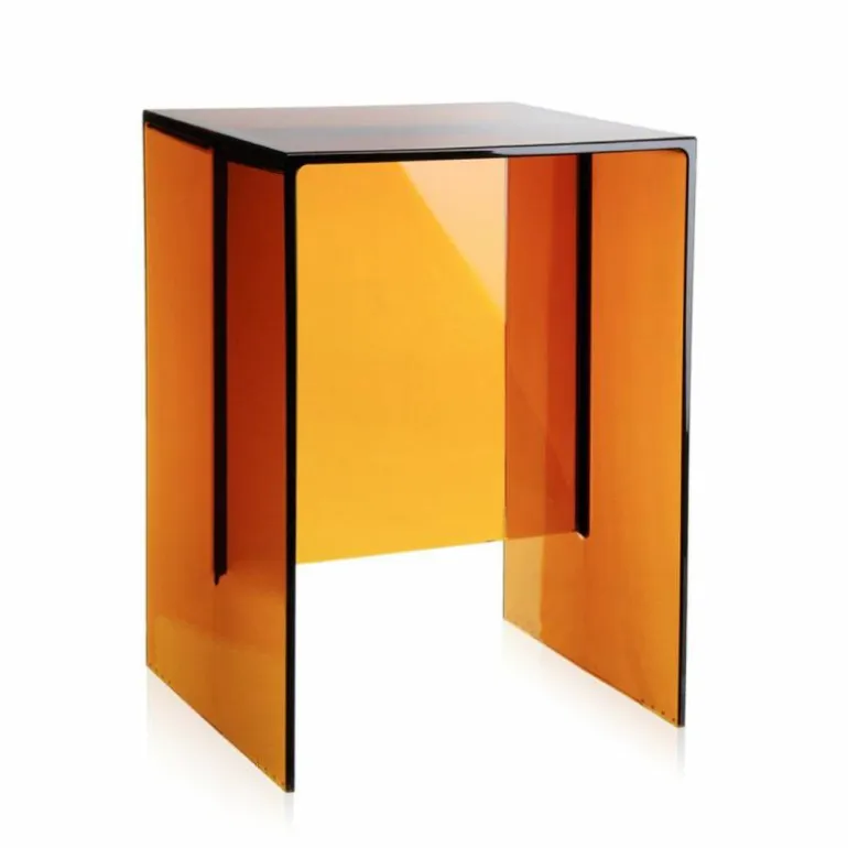 Max-Beam, gemaakt van de kunststof PMMA, is verkrijgbaar in de kleuren kristal, oranje, amber en blauw en is goed te combineren met de Sound-Rack van Kartell.r