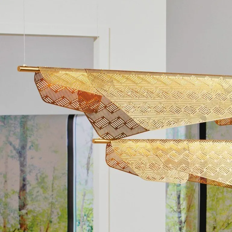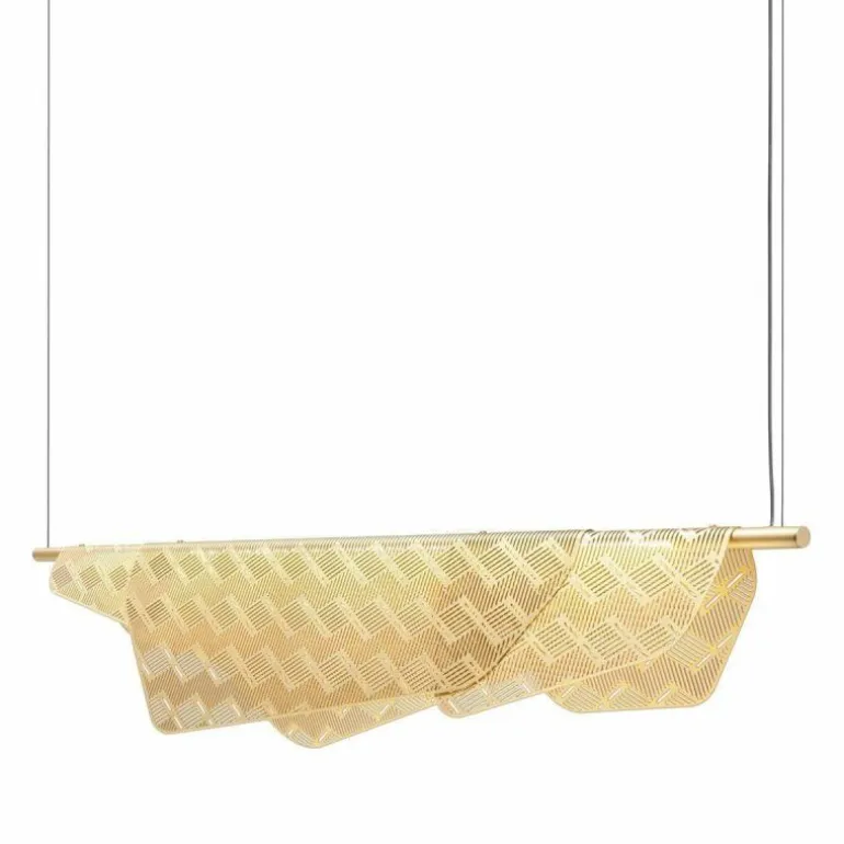 De Petite Friture Mediterranea Hanglamp is een ontwerp van Noé Duchaufour – Lawrance . Voor dit prachtige design heeft Lawrance inspiratie gehaald uit het golvende wasgoed op de mediterrane balkons. Dit is terug te zien aan de symbolische deken die gewichtloos gedrapeerd is over de stalen buis. De deken van messing is elegant gevormd en heeft verschillende lagen en patronen wat het een dynamisch design maakt. Daarnaast geeft het patroon een prachtige lichtweerkaatsing en een mooi schaduwspel op het plafond en de muren. De hanglamp zal ongetwijfeld aan elk interieur een romantische elegantie toevoegen.r