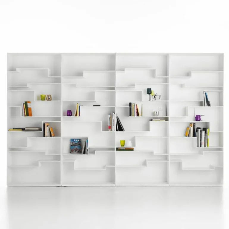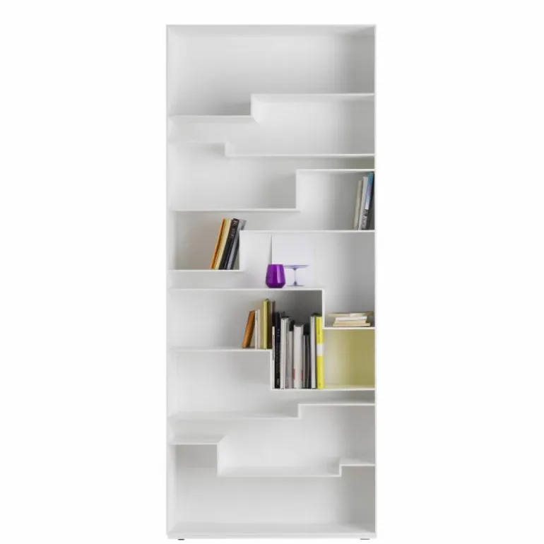 De schappen zijn zodanig gerangschikt dat ook grote boeken een plaats kunnen hebben in de kast. Melody is zowel op zichzelf als in combinatie met meerdere Melody boekenkasten erg leuk in uw interieur. Extra leuk is het dat Melody ondersteboven geplaatst kan worden. Hierdoor kunt u zowel een continue als een discontinu patroon creëren indien u meerdere kasten naast elkaar plaatst. Voor een extra bijzonder effect! r