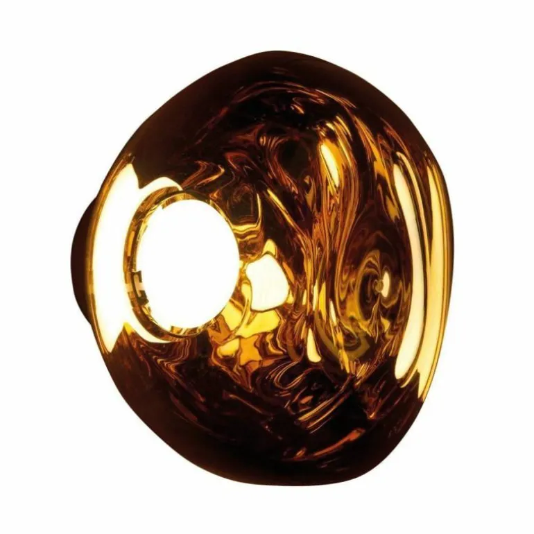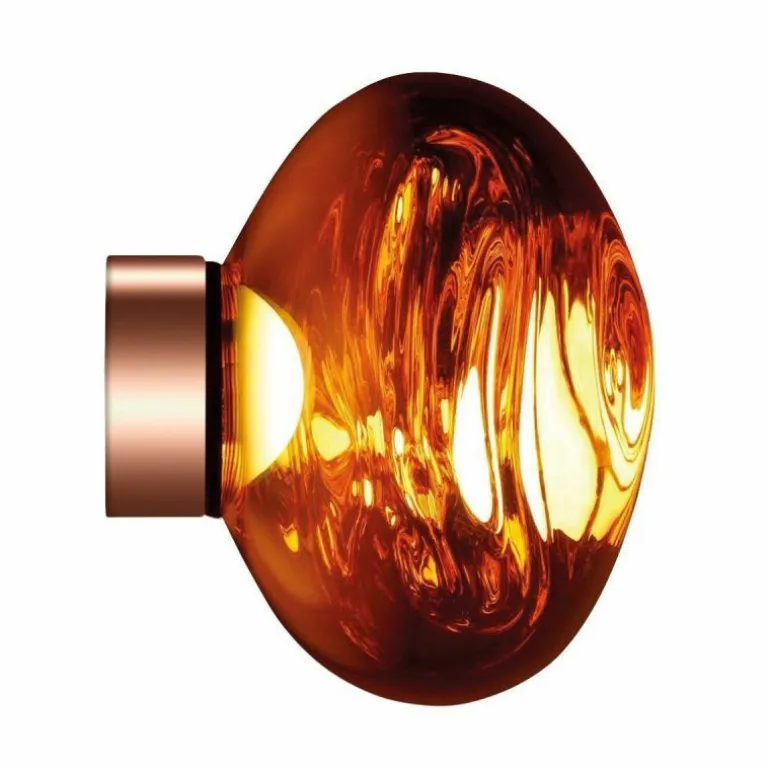 De Tom Dixon Melt Mini Surface Wand- en Plafondlamp is de nieuwste variant binnen de Melt lampenfamilie en een ontwerp van designersduo Front. Het design van de Melt Mini Surface Wand- en plafondlamp is geïnspireerd op de manier waarop glas zich vormt door hitte tijdens het glasblazen. Wanneer de lamp uitstaat zult u dit niet direct opmerken, maar zodra de lamp is ingeschakeld verandert de solide koperen buitenzijde in een doorzichtige gloeiende bol. De Melt Mini Surface Wand- en Plafondlamp is een prachtig kunstwerk aan de wand!r