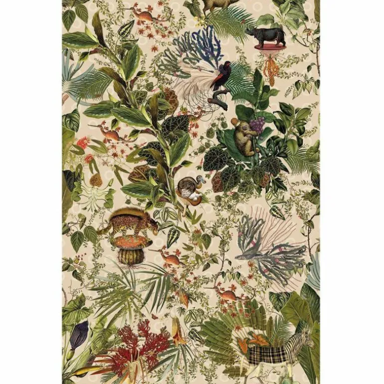 Het Extinct Animals Behang is er met verschillende prints die allemaal een betoverende diepte en mystiek met zich meebrengen, met afwisselende texturen en glanseffecten. Steeds weerspiegelen de kleuren en zachte reliëfs de vachten en pluimages van de dieren. Wie gebiologeerd is door alle verschijningen, kan kiezen voor de print Menagerie of Extinct Animals waarop alle dieren in een kleurrijke wildernis te zien zijn. Op Menagerie of Extinct Animals zijn ronde vormen te zien op een achtergrond van verticale lijnen die een licht reliëf hebben.r