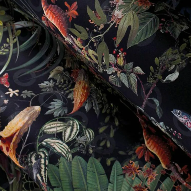 Het Extinct Animals Behang is er met verschillende prints die allemaal een betoverende diepte en mystiek met zich meebrengen, met afwisselende texturen en glanseffecten. Steeds weerspiegelen de kleuren en zachte reliëfs de vachten en pluimages van de dieren. Wie gebiologeerd is door alle verschijningen, kan kiezen voor de print Menagerie of Extinct Animals waarop alle dieren in een kleurrijke wildernis te zien zijn. Op Menagerie of Extinct Animals zijn ronde vormen te zien op een achtergrond van verticale lijnen die een licht reliëf hebben.r
