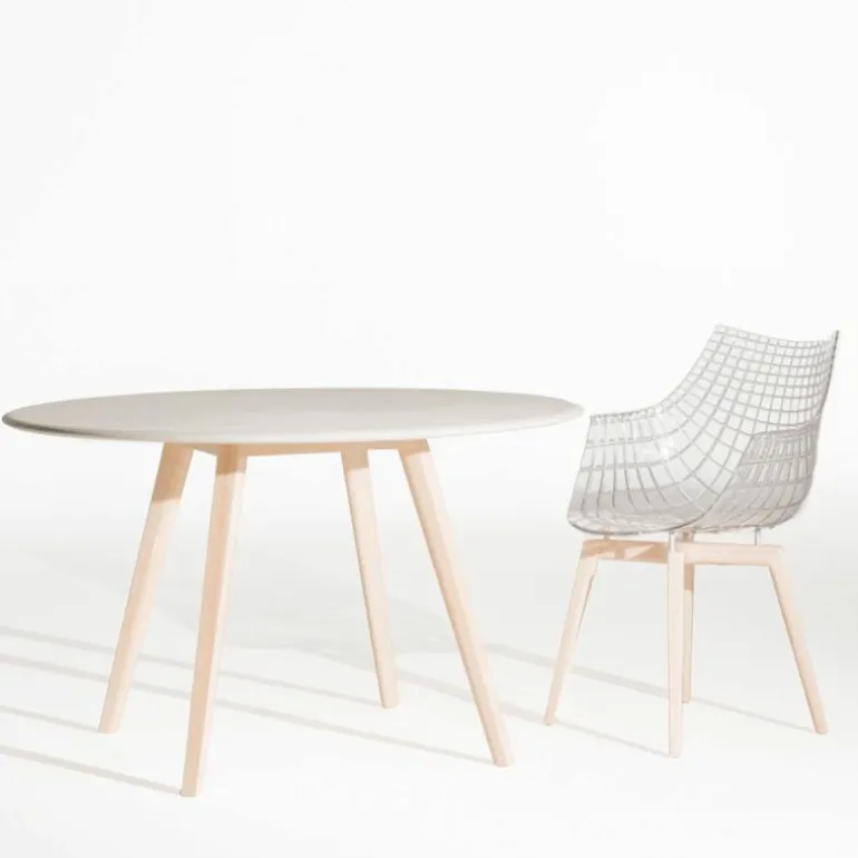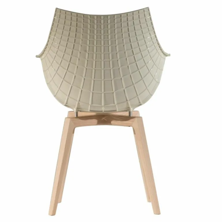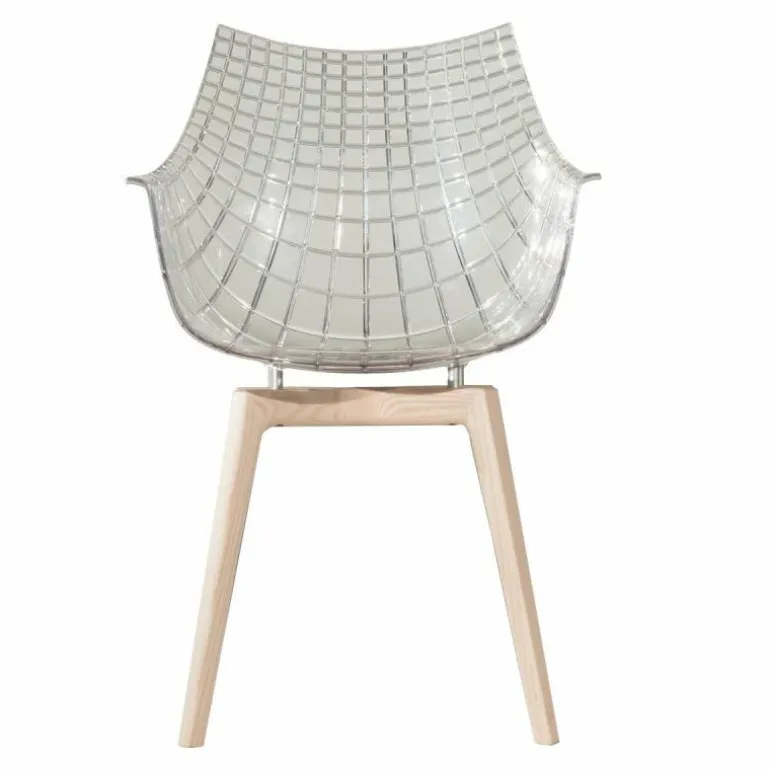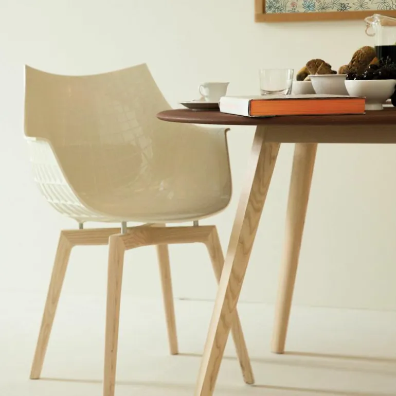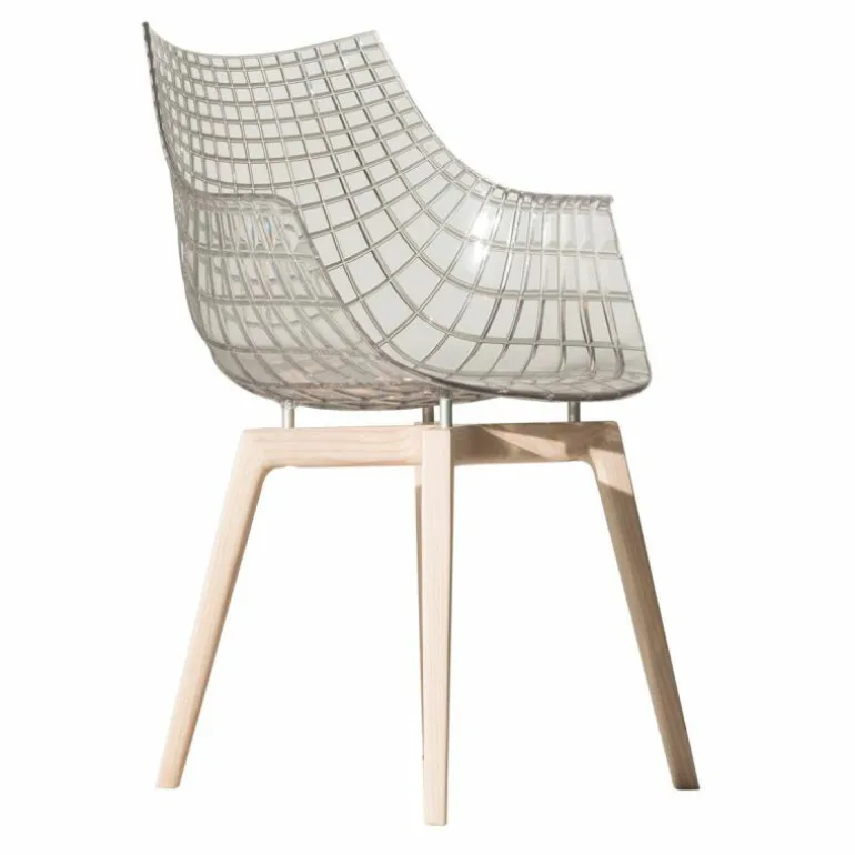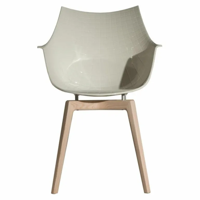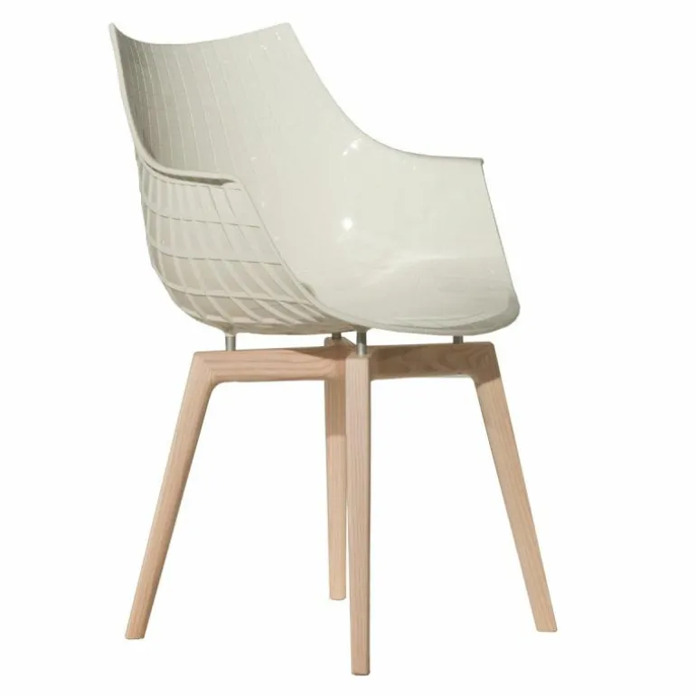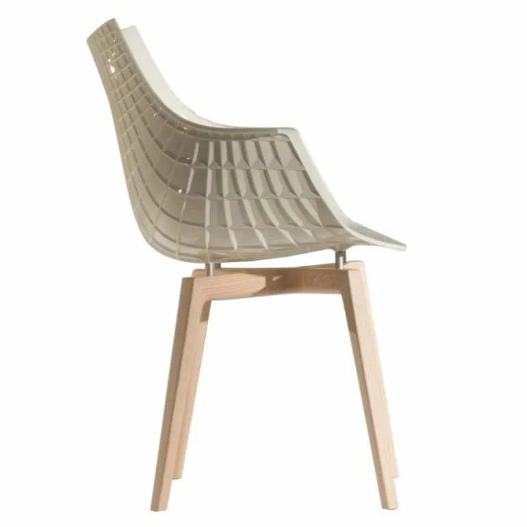 De kuipvormige zitschaal bestaat uit gevormd polycarbonaat en is uitgebracht in de kleuren wit, zwart, helder transparant en transparant in ‘Smoky Grey’. Daarnaast is de zitschaal ook verkrijgbaar in een volledig gestoffeerde uitvoering van Tigri leder, dit wordt met een vacuumtechnologie strak op het polycarbonaat aangebracht. Het vierpotige onderstel is gemaakt van solide essenhout in een naturel afwerking en een lakafwerking in de kleur ‘Charcoal’. Naast deze uitvoering van het onderstel, is de Meridiana ook verkrijgbaar met een onderstel van staal met een chromen of zwart gelakte afwerking. Deze uitvoering vindt u terug bij de productfamilie, waarin ook de Meridiana stoel 4-teens, barkruk en bureaustoel opgenomen zijn.r