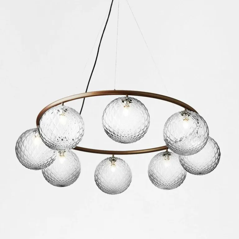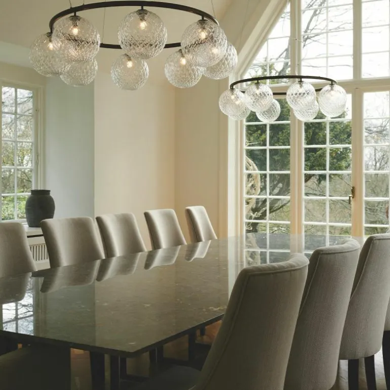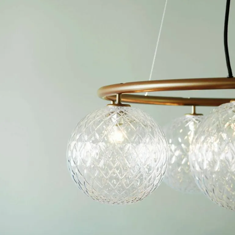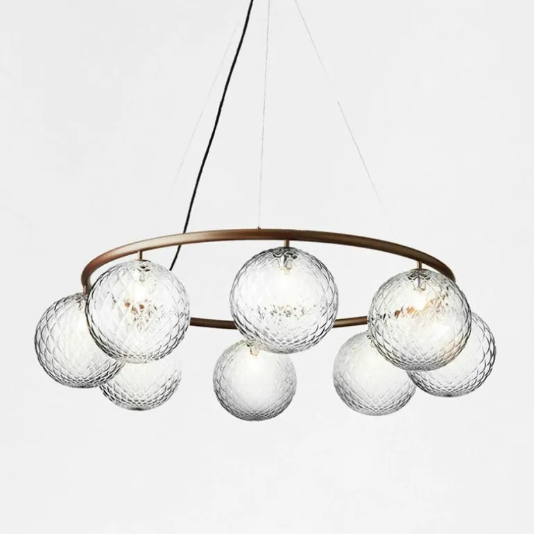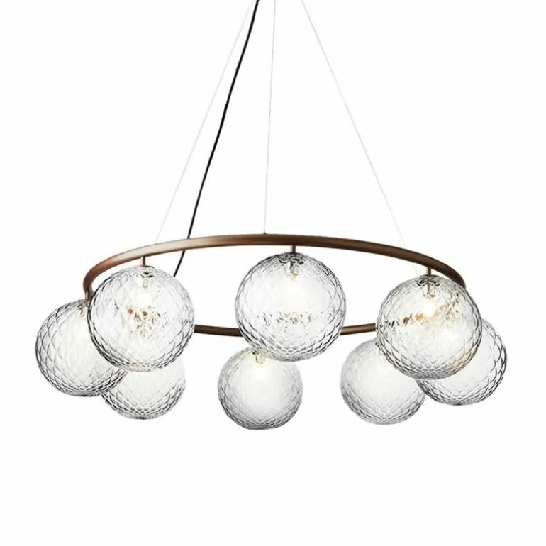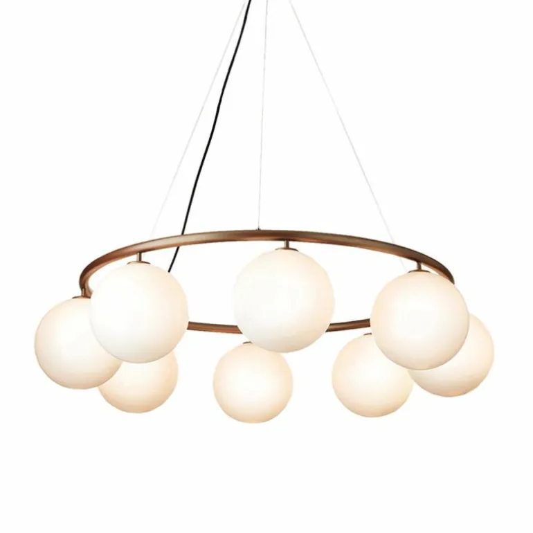 De Miira 6 Kroonluchter telt zoals de naam weggeeft welgeteld zes aparte lichtbronnen die samen een sfeervol en zwoel licht uitstralen. De lamp biedt zes aansluitingen voor G9 LED lichtbronnen van maximaal 7 Watt, die ieder worden omhuld door een bolvormige mondgeblazen kap in semi-transparant opaal glas of transparant optisch glas. Deze zitten bevestigd aan een prachtige luxueuze ring in een donker gebronsde afwerking. De kroonluchter wordt met drie ophangkabels, een zwarte snoer en een plafondkap van (Ø14,8 centimeter) geleverd. De lichtbronnen zijn niet inbegrepen, deze kunt u apart mee bestellen.r