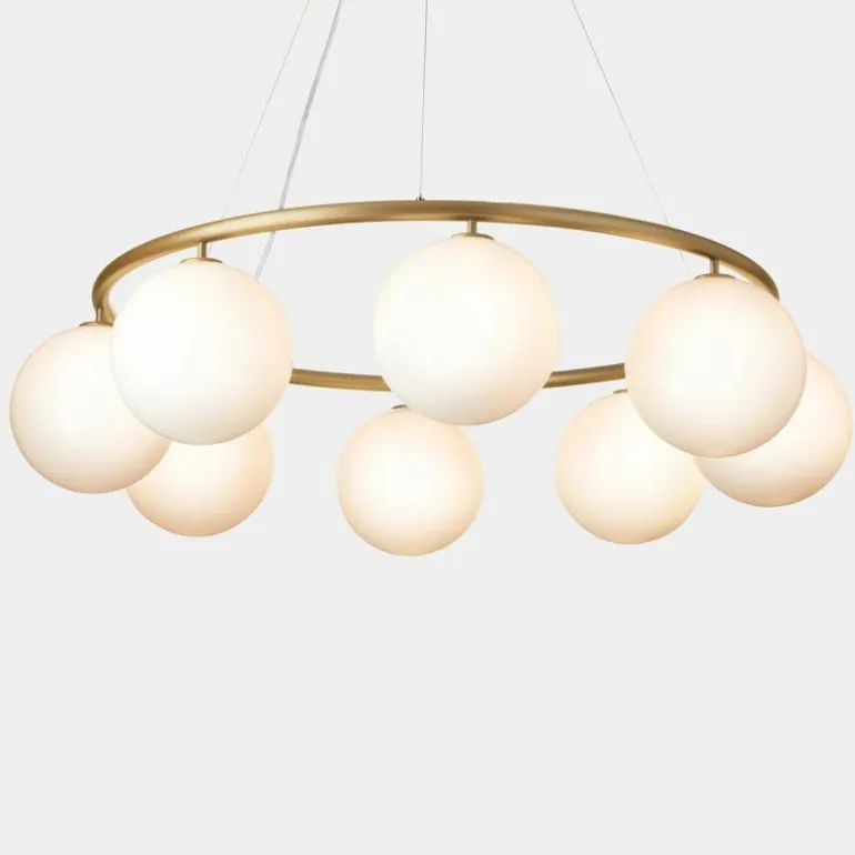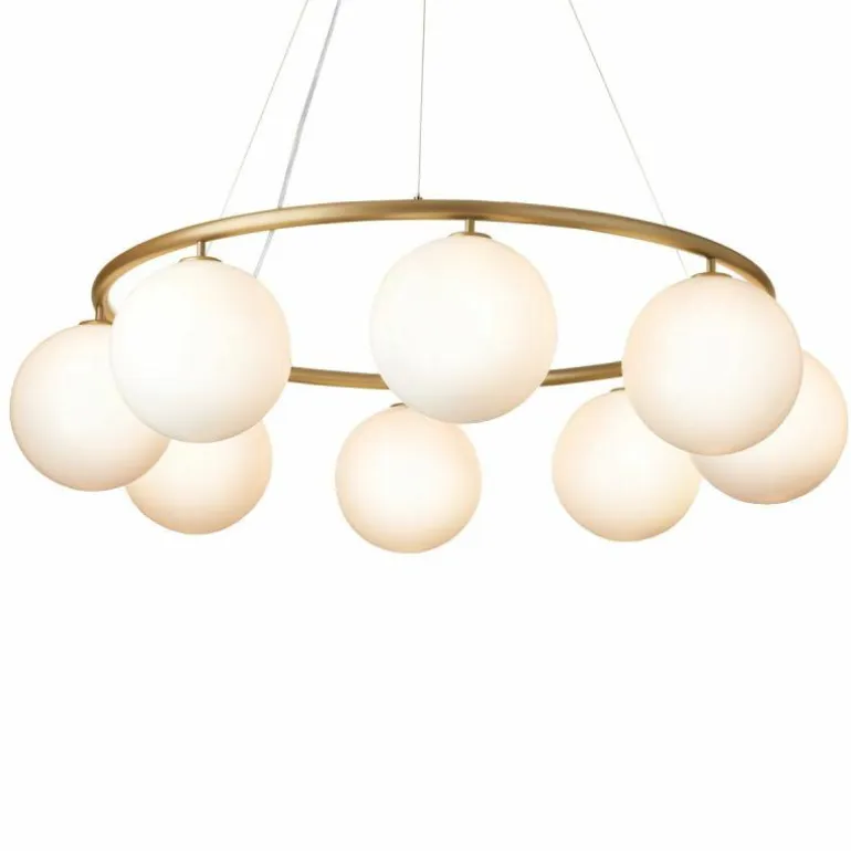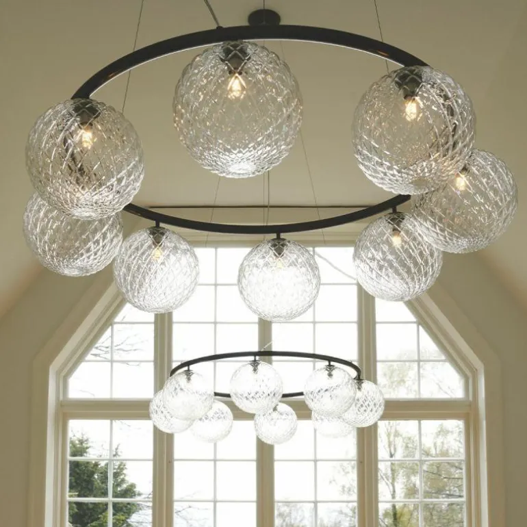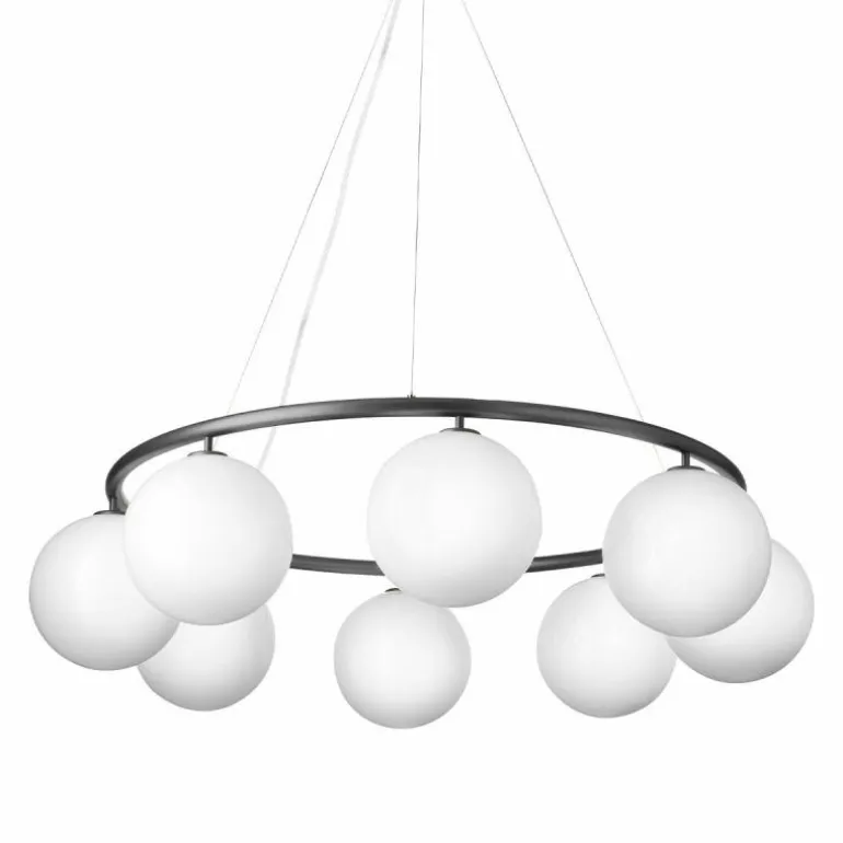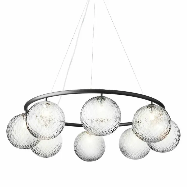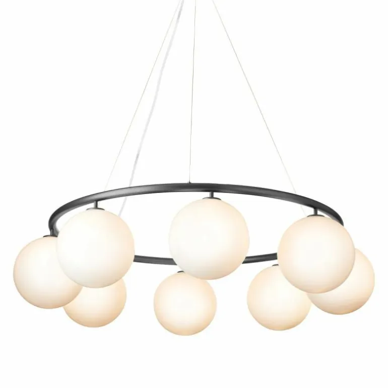 De Miira 6 Kroonluchter telt zoals de naam weggeeft welgeteld zes aparte lichtbronnen die samen een sfeervol en zwoel licht uitstralen. De lamp biedt zes aansluitingen voor G9 LED lichtbronnen van maximaal 7 Watt, die ieder worden omhuld door een bolvormige mondgeblazen kap in semi-transparant opaal glas of transparant optisch glas. Deze zitten bevestigd aan een prachtige luxueuze ring in een donker gebronsde afwerking. De kroonluchter wordt met drie ophangkabels, een zwarte snoer en een plafondkap van (Ø14,8 centimeter) geleverd. De lichtbronnen zijn niet inbegrepen, deze kunt u apart mee bestellen.r