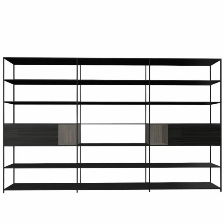 Frame Graphite Grey / 2 x Ladekastje Black Natural Wood / 2 x Open Kastje Grey Natural Wood. r