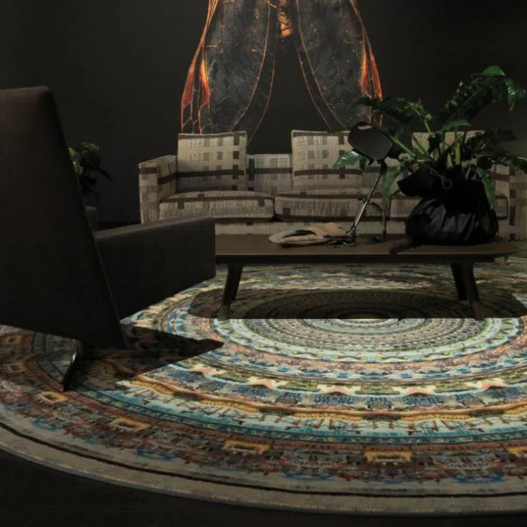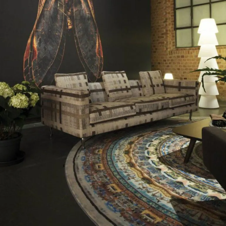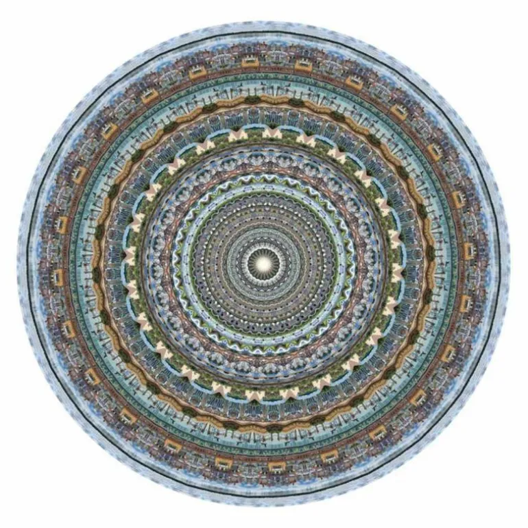 Het Minneapolis Vloerkleed zal voor hem extra bijzonder zijn, aangezien het de stad is waar hij woont en werkt. De kleuren lichtblauw, groen en oranje voeren de boventoon, maar zodra u dichterbij komt zijn er nog honderden kleuren meer te ontdekken in het met een fotoprint bedrukte vloerkleed van polyamide. Polyamide garens zijn dankzij de synthetische aard goed schoon te houden en bovendien behoudt het zijn kwaliteit en kleur beter dan andere materialen. Het vloerkleed is verkrijgbaar met een diameter van 250 en 350 centimeter. De onderkant is voorzien van vilt.