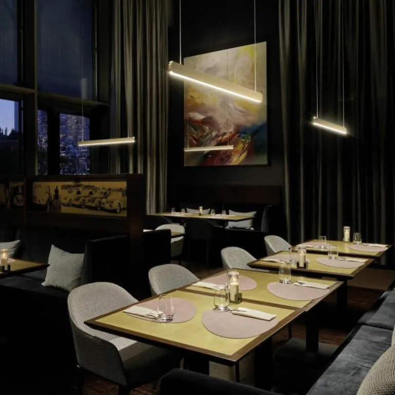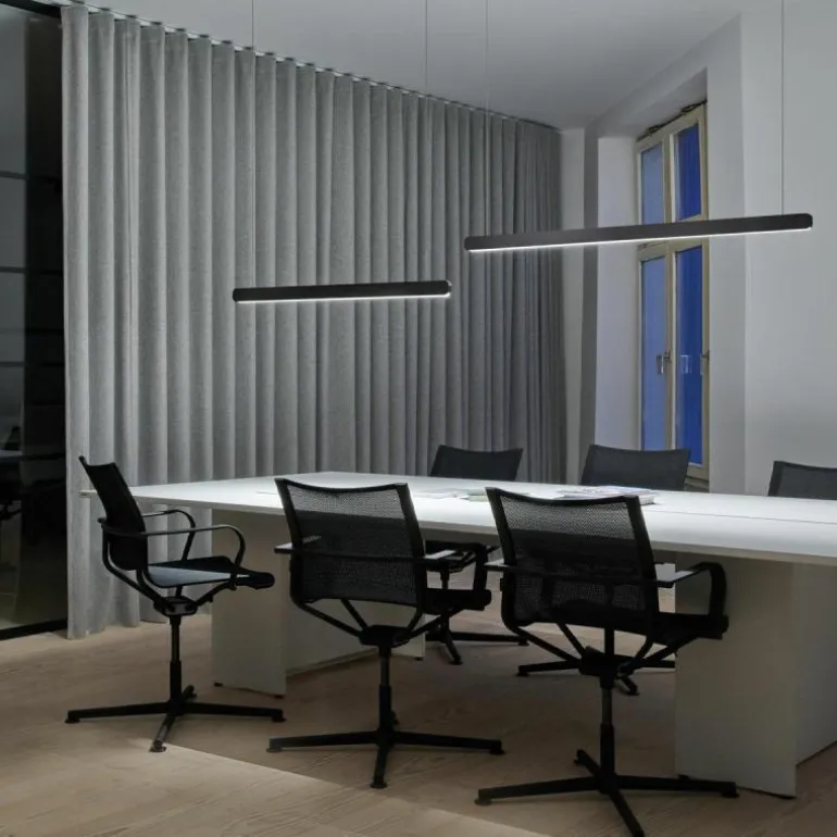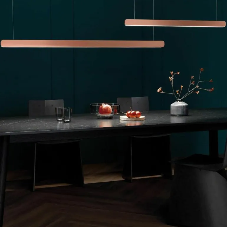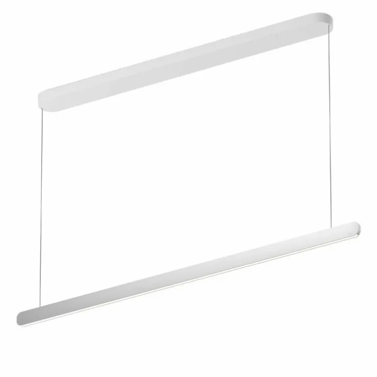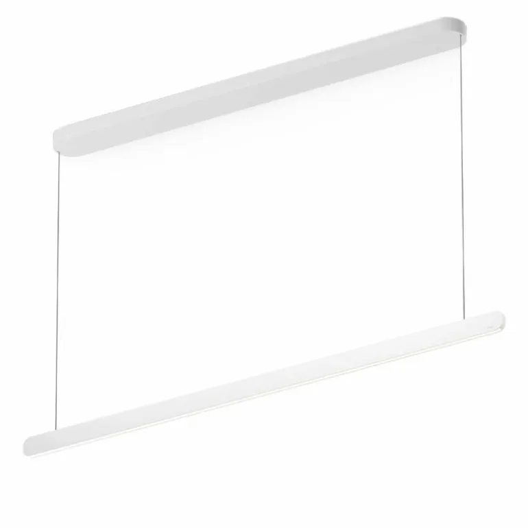 De minimalistische hanglamp is verkrijgbaar met een lengte van 140 centimeter (Large) en 100 centimeter (Small). Om een speelse uitstraling te creëren zijn deze formaten perfect te combineren. De kleinere variant kunt u terugvinden in de productfamilie. Als opzichzelfstaande lamp past de Mito Linear Volo Hanglamp stijlvol boven uw eettafel, in de keuken, leefruimte of een kantoorruimte. r
