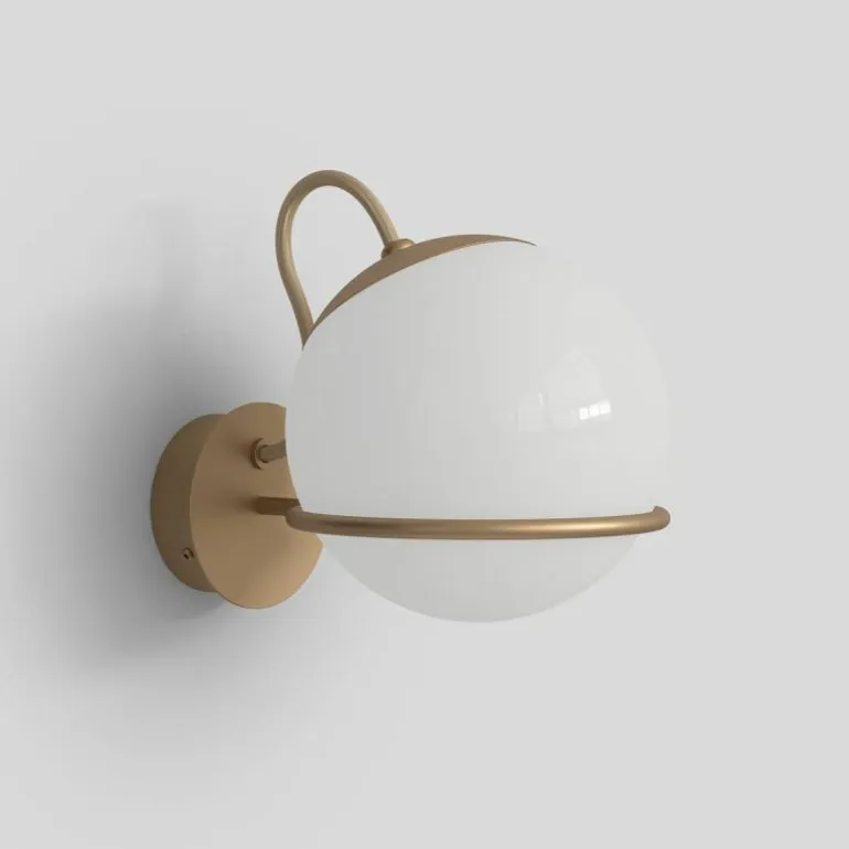 De bollen zijn gemaakt van opaalglas en hangen stevig in een omhelzing van staal. Het armatuur is geheel gemaakt van staal en krijgt door de sierlijke vorm een luchtige uitstraling. De wandlamp is verkrijgbaar in twee afmetingen. De 237 Wandlamp heeft een bol met een diameter van 14 centimeter. De 238 Wandlamp heeft een bol met een diameter van 20 centimeter. De wandlampen zijn verkrijgbaar in de kleuren zwart en champagne. In totaal heeft u de keuze uit acht varianten. Vier varianten hebben een aan en uit knop op een snoer wat vast zit aan het armatuur. r