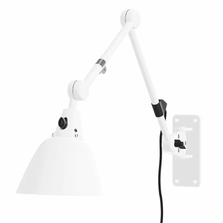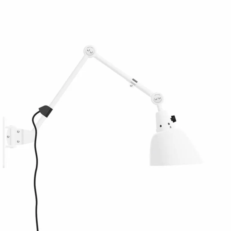 De Midgard Modular 505 Wandlamp scharniert op drie punten. De lamp wordt aan de wand geschroefd en kan op dit punt van links naar rechts bewegen. In de arm zitten twee scharnieren waardoor de lamp in hoogte versteld kan worden. De twee stukken waar de arm uit bestaat zijn verkrijgbaar in verschillende lengtes. Op de kap zit een draaischakelaar. De kap is verkrijgbaar in verschillende kleuren. Enkele varianten van de verschillende armlengtes en kleuren zijn direct te bestellen. Liever een andere lengte of kleur? Neem dan contact op met onze interieuradviseurs. Zij kijken graag mee naar de mogelijkheden.r