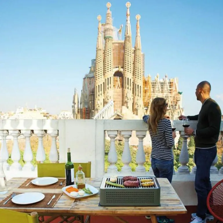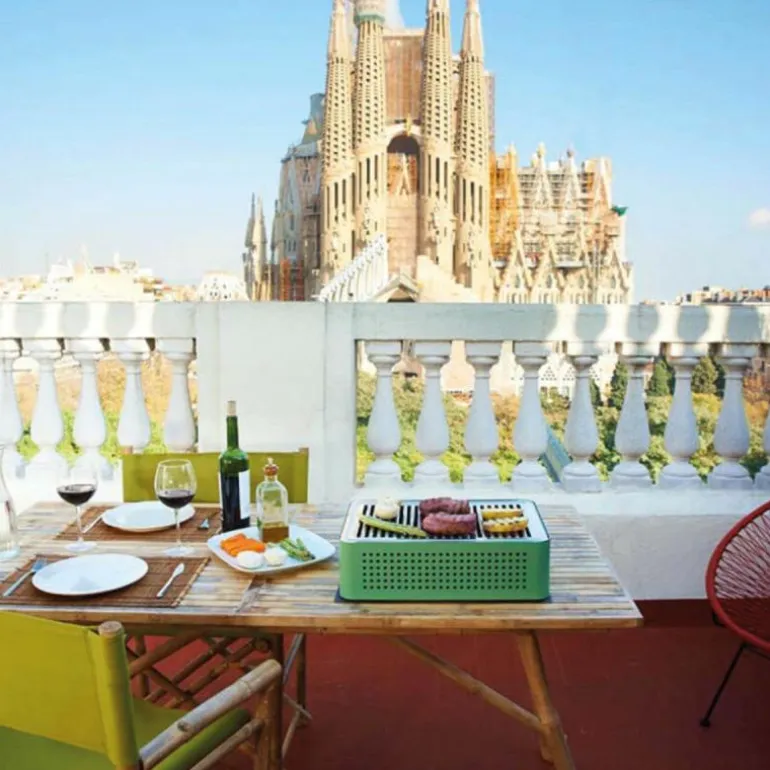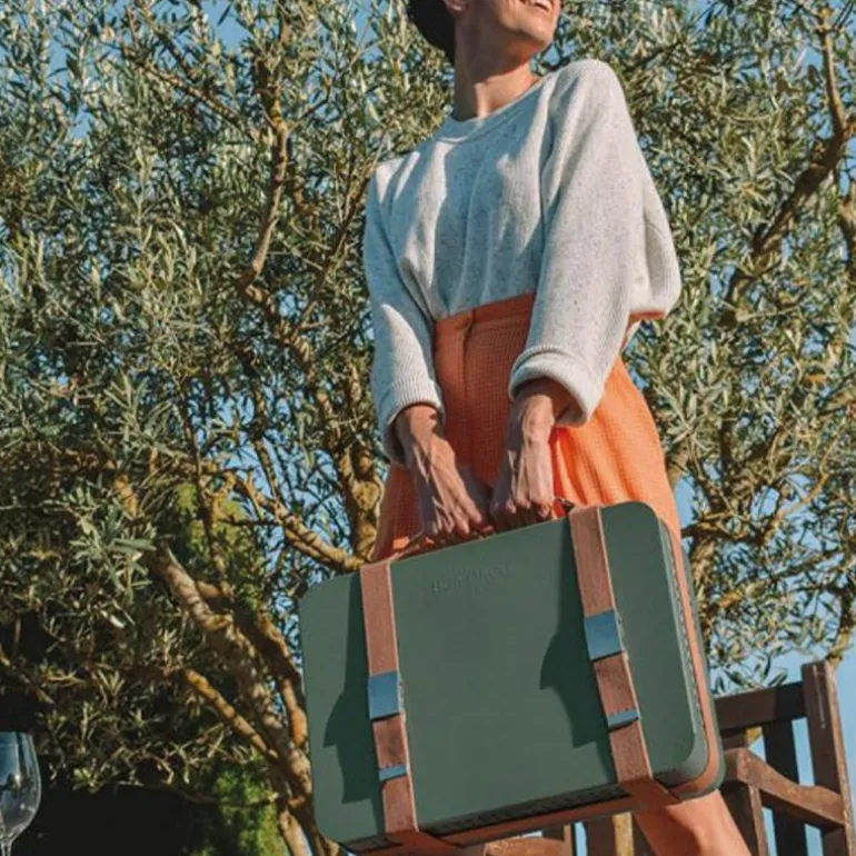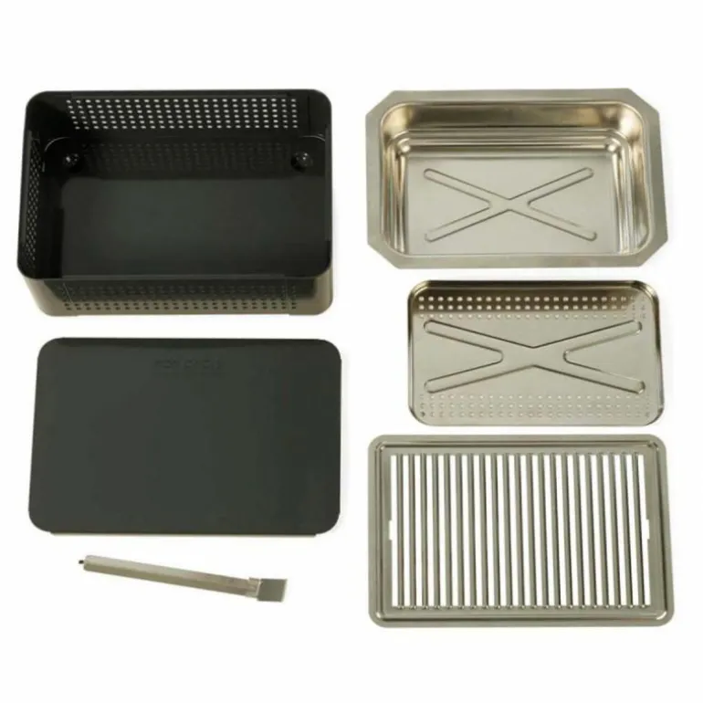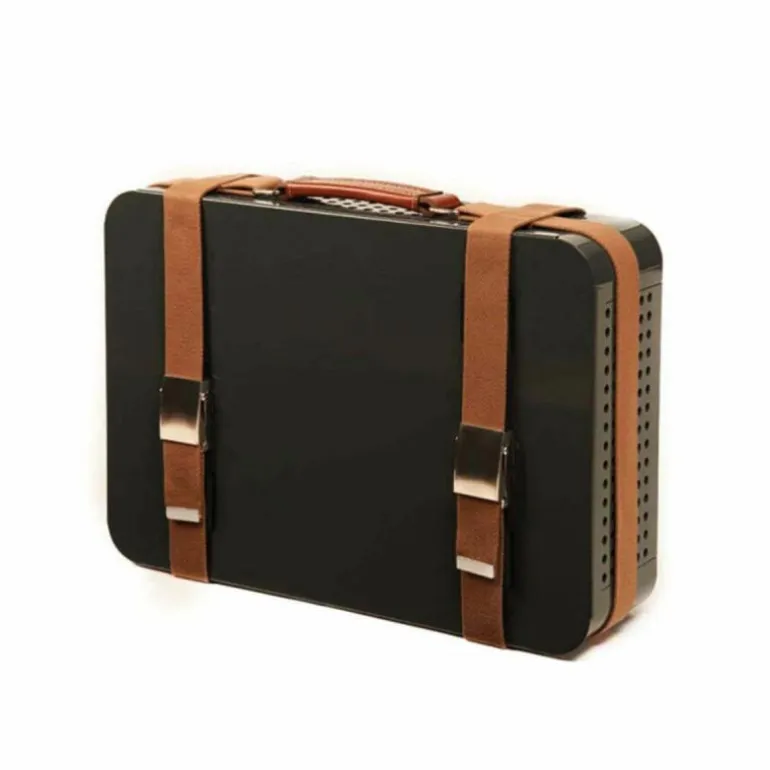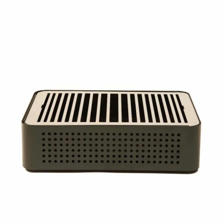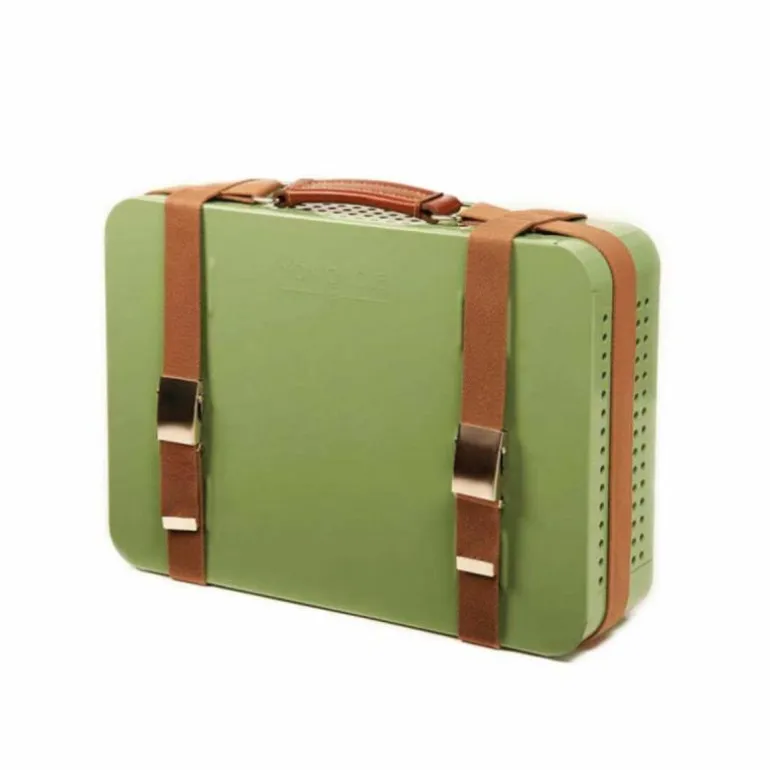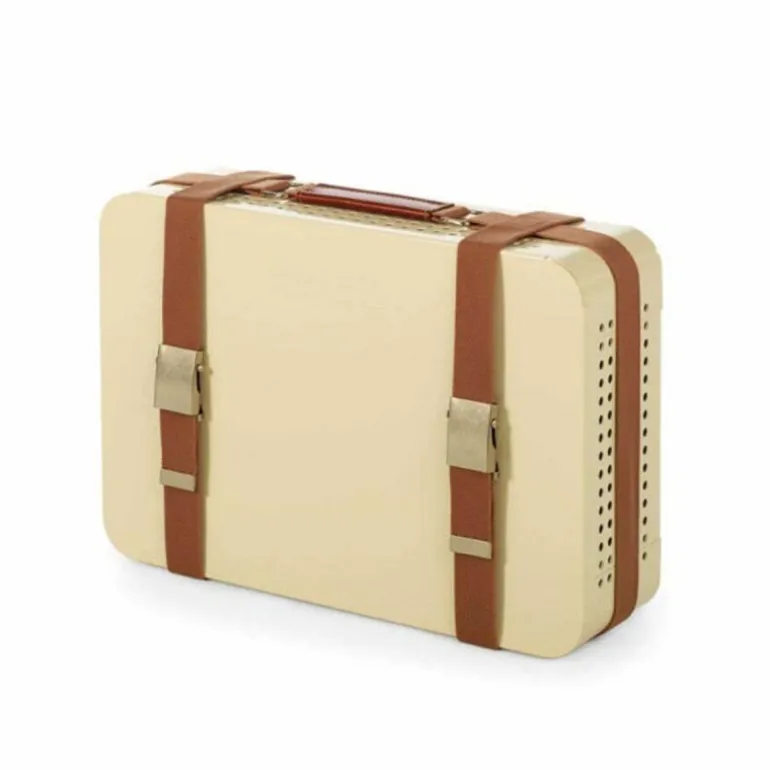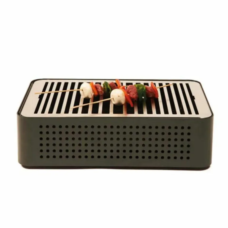 Deze kleine tafelbarbecue bestaat uit een grill en binnenzijde van roestvast staal, een geperforeerd stalen frame voorzien van polyester verf, een band van nylon en een lederen handvat. Naast de karakteristieke vintage uitstraling zorgt het geperforeerde oppervlak ervoor dat de luchtstroom wordt vergroot en de barbecue niet oververhit raakt. Deze handige barbecue is eenvoudig te demonteren en af te wassen, zelfs in de vaatwasser. De Mon Oncle is in diverse kleuren uitgebracht, die altijd een vrolijke sfeer met zich meebrengen.