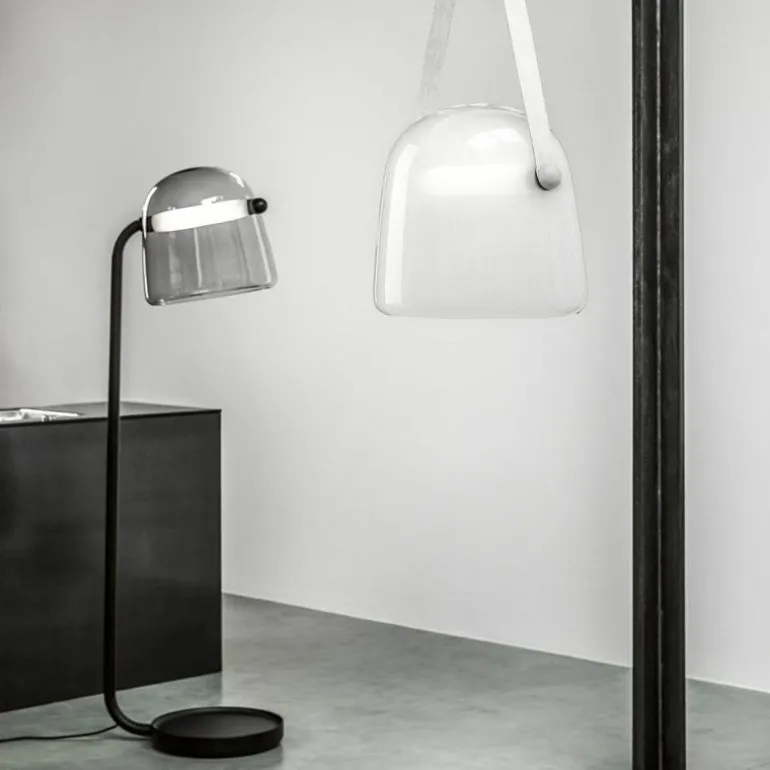 De Brokis Mona Vloerlamp is een ontwerp van Lucie Koldová. Mona is een stoere en elegante lamp in één door de combinatie van totaal verschillende materialen van hoge kwaliteit en door haar vorm. De grote bel-vormige ‘lampenkap’ die gemaakt is van hoogwaardig glas wordt als het ware doorkruist door een langwerpige geïntegreerde led-lichtbron. Hierdoor ontstaat een spannend en delicaat effect. De dimbare lichtbron is bovendien ontwikkeld door Brokis zelf, een echte expert op het gebied van glas en verlichting. r