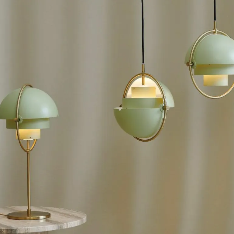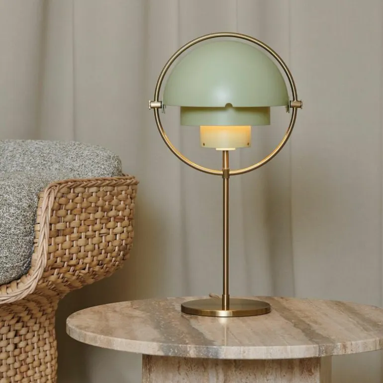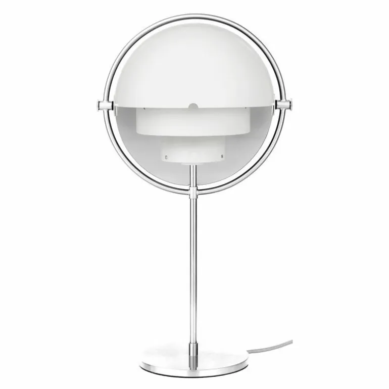 Deze Tafellamp is in 2019 aan de Multi-Lite familie toegevoegd. Deze is verkrijgbaar met messing frame in combinatie met een messing of zwarte kap en met een chromen frame in combinatie met chromen en witte kap.