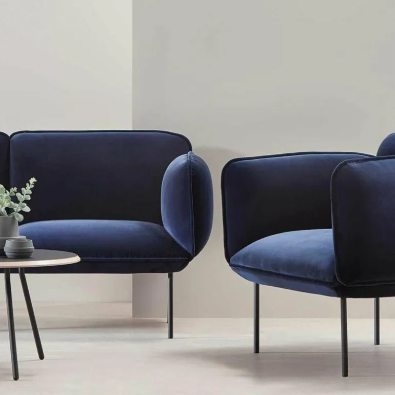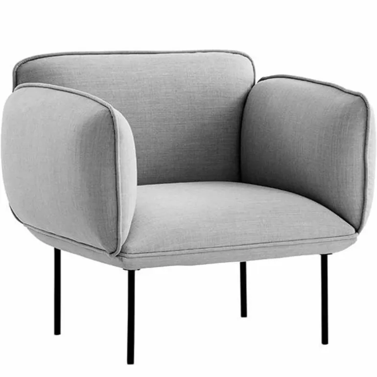 is het elegante design van Mika Tolvanen. De Fauteuil heeft door de rondingen van de kussens een zacht en aantrekkelijk uiterlijk. De rechte vorm van de fauteuil in combinatie met de simplistische metalen voeten vormen een speels contrast met deze rondingen. De vulling van de stoel bestaat uit veerkrachtig schuim en singelband en maken de stoel heerlijk zacht en comfortabel. De zachte basis van de stoel wordt gedragen door een sterk sterk frame van multiplex. Nakki is verkrijgbaar in eindeloos veel stof- en lederafwerkingen. Op onze website zijn drie varianten direct te bestellen. De eerste fauteuil heeft een luxeuze grijze Kvadrat bekleding. De tweede variant is voorzien van een prachtige velours blauwe Harald stoffering. Tot slot kunt u de fauteuil ook direct met een Camo Silk Leather bekleding bestellen. Zit uw kleur er niet bij? Neem dan vul dan onderstaand offerteformulier in of neem concact op met onze klantenservice. Het opvallende design heeft een breedte van 97 centimeter, een hoogte van 83 centimeter en een diepte van 78 centimeter. r