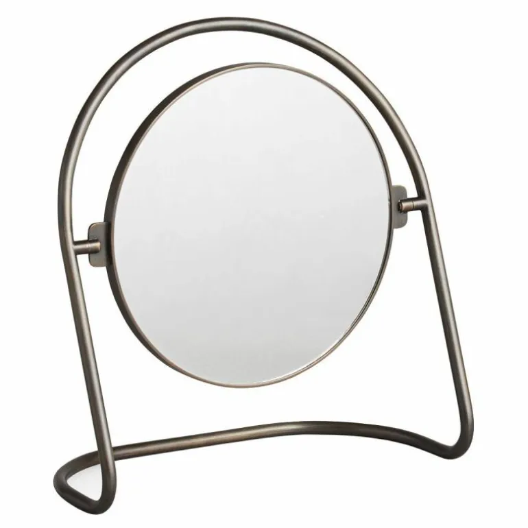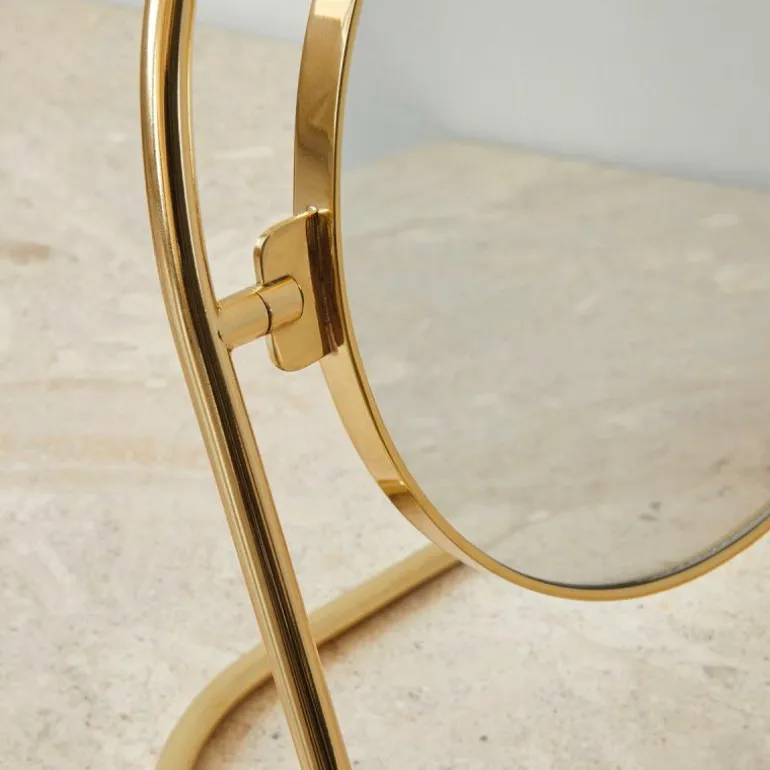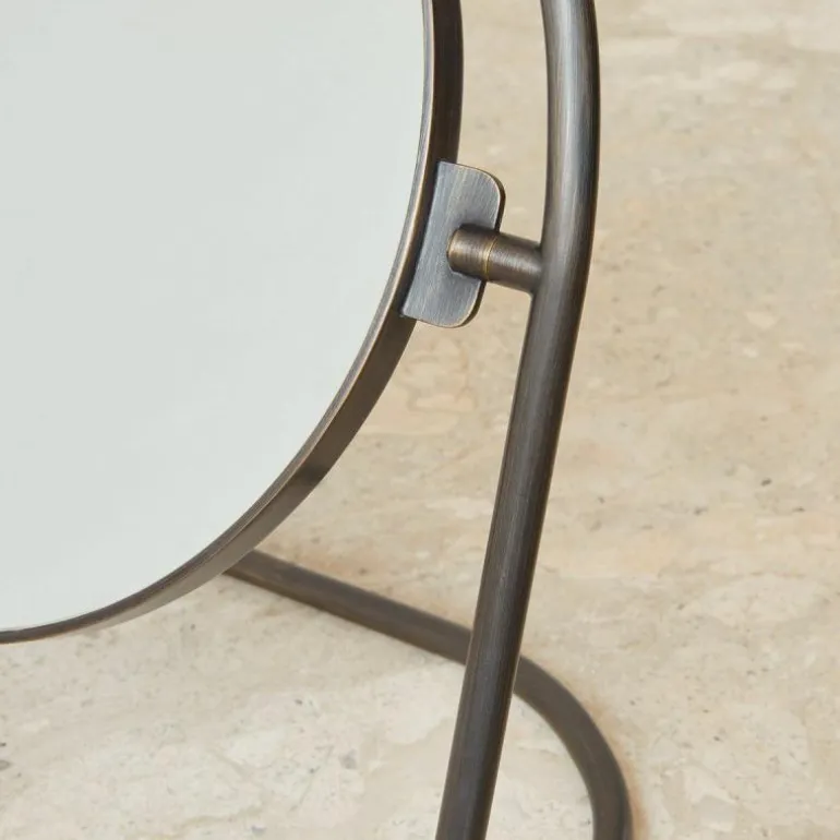 Het tafelmodel van de Nimbus spiegel is gemaakt van massief messing en wordt uitgebracht in een moderne gepolijst messing uitvoering en een gebronsd messing uitvoering met een antieke uitstraling. Beide uitvoeringen passen goed in uitlopende interieurstijlen.