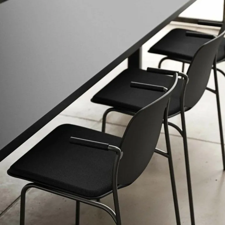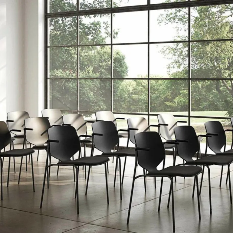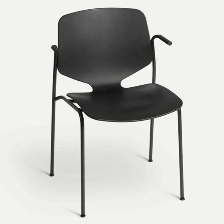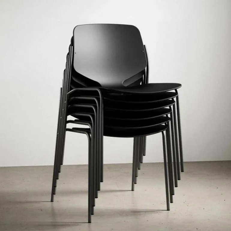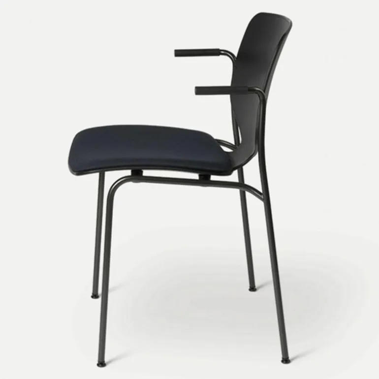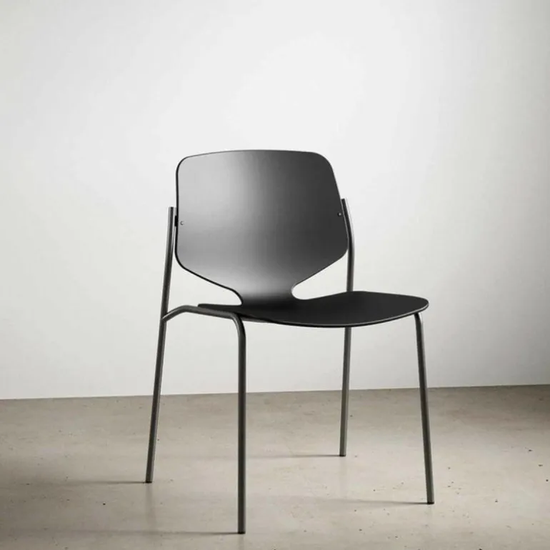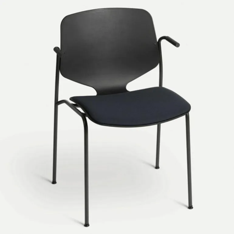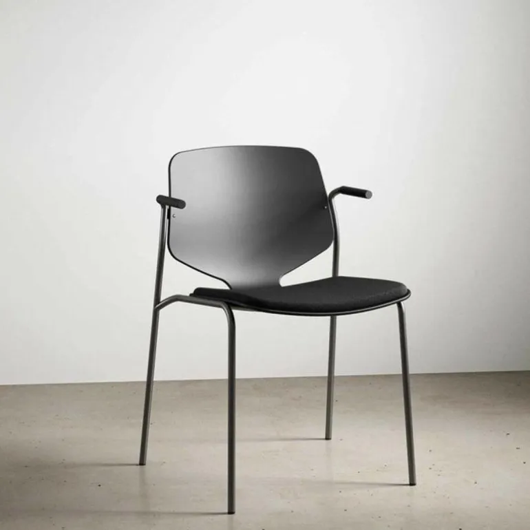 De gehele zitschaal is gemaakt van gerecycled plastic afval uit de oceaan en bestaat voor het grootste deel uit visnetten. Het onderstel is gemaakt van staal en heeft een gun metal afwerking. Er zijn twee varianten zonder bekleding waarvan één met armleuningen. Daarnaast zijn er ook nog twee varianten met bekleding waarvan er ook één variant is met armleuningen. De stoelen met een gestoffeerde zitting zijn bekleed met een CURA stoffering van Gabriel. Deze stof bestaat voor 98% uit gerecycled polyester. In totaal heeft u dus de keuze uit vier varianten.