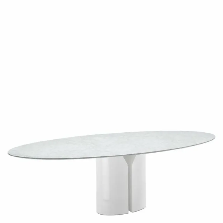 Zowel de tweedelige tafelvoet als de onderkant van het blad zijn vervaardigd uit gegoten polyurethaan. Bovenop de onderlaag van het tafelblad zit een vezelspaanderplaat met hierover een laag van marmer. Het blad is verrijkt met een beschermende matte of glanzende lak, waardoor de tafel decennialang in goede staat meegaat. In beide delen van het onderstel is extra gewicht toegevoegd in de vorm van gegoten ijzer. Dit maakt dat de constructie het gewicht van het stenen tafelblad kan houden en deze niet omvalt. Tevens is de tweedelige voet voorzien van een glanzende lak welke een extra vleugje elegantie toevoegt aan het ontwerp. r