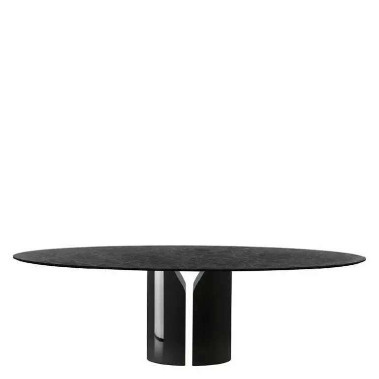 De MDF Italia NVL Eettafel Marmer is een ontwerp van Jean Nouvel. In het design komen de typerende kenmerken van Nouvels designesthetiek duidelijk terug. Geometrische vormen, grafische lijnen en een elegante lichtheid komen samen en vormen deze luxueuze eettafel. Het onderstel en tafelblad zijn vervaardigd uit verschillende materialen waardoor een prachtig contrast ontstaat. Bovendien speelt Nouvel met vormen door het dunne en licht ogende tafelblad te combineren met twee royale, symmetrische poten die het tafelblad moeiteloos ondersteunen. Het gebruik van marmer, een natuurlijk materiaal, maakt dat iedere tafel uniek is. Bovendien creëren de natuurlijke aders een bijzonder effect en weet de eettafel in iedere keukenruimte de aandacht op zich te vestigen.r