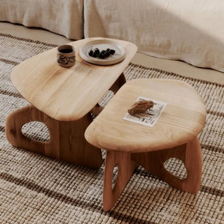 De Ferm Living Oar Salontafel Klein is ontworpen als een functioneel en verfijnde tafel die zich onderscheidt door materiaalgebruik en vorm. De tafel is vervaardigd uit FSC-gecertificeerd massief eikenhout, afgewerkt met een natuurlijke olie die de nerf en structuur van het hout benadrukt. Dit materiaal geeft de tafel een warme en authentieke uitstraling, terwijl de solide constructie zorgt voor duurzaamheid en stabiliteit.Het ontwerp wordt gekenmerkt door zachte, vloeiende rondingen die de tafel een uitnodigend karakter geven. Een uitgesneden detail in de poten versterkt de sculpturale kwaliteit en maakt het ontwerp onderscheidend binnen de collectie van Ferm Living. Voor extra verfijning en stevigheid zijn de poten voorzien van messing elementen die stabiliteit garanderen, ook op verschillende soorten vloeren.De Oar Salontafel is ontwikkeld met het oog op veelzijdig gebruik. Het oppervlak biedt voldoende ruimte voor het neerzetten van glazen, boeken of decoratieve accessoires. Door de compacte afmetingen kan de tafel eenvoudig worden toegepast in kleinere woonruimtes of gecombineerd worden met andere tafels uit dezelfde serie. In grotere ruimtes kan de tafel dienen als zelfstandig middelpunt, terwijl zij in combinatie met de grotere variant een flexibel en gelaagd geheel vormt.De praktische opzet van het ontwerp komt ook naar voren in de levering en montage. De tafel wordt plat verpakt geleverd en is eenvoudig in elkaar te zetten, waardoor zij snel en zonder ingewikkelde handelingen klaar is voor gebruik. Dit maakt de Oar Salontafel niet alleen aantrekkelijk door haar uitstraling, maar ook door haar gebruiksgemak.Het ontwerp weerspiegelt de ontwerpfilosofie van Ferm Living, waarin aandacht voor detail en de keuze voor duurzame materialen centraal staan. Door de combinatie van massief hout, verfijnde afwerking en subtiele messing accenten ontstaat een meubel dat tijdloos is en zich aanpast aan uiteenlopende interieurstijlen.Met de Oar Salontafel brengt Ferm Living een meubel op de markt dat traditie en modern design samenbrengt. De tafel is duurzaam, praktisch en visueel onderscheidend, waardoor zij geschikt is voor dagelijks gebruik én als decoratief element in de woonruimte. Door de heldere vormgeving en het gebruik van natuurlijke materialen vormt dit meubel een blijvende toevoeging aan het interieur.